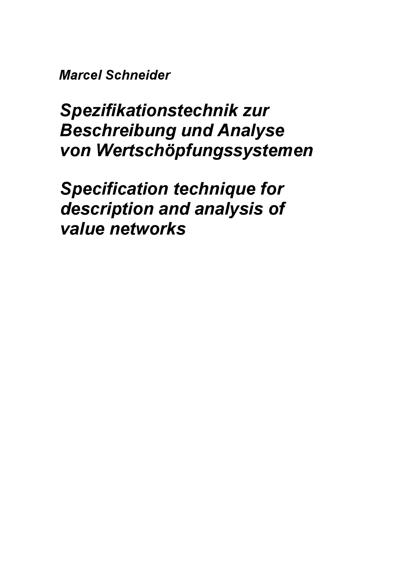 Spezifikationstechnik zur Beschreibung und Analyse von Wertschöpfungssystemen / Marcel Schneider