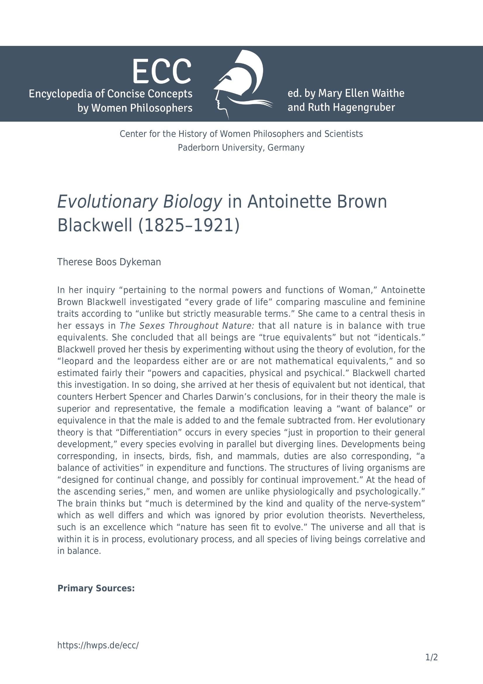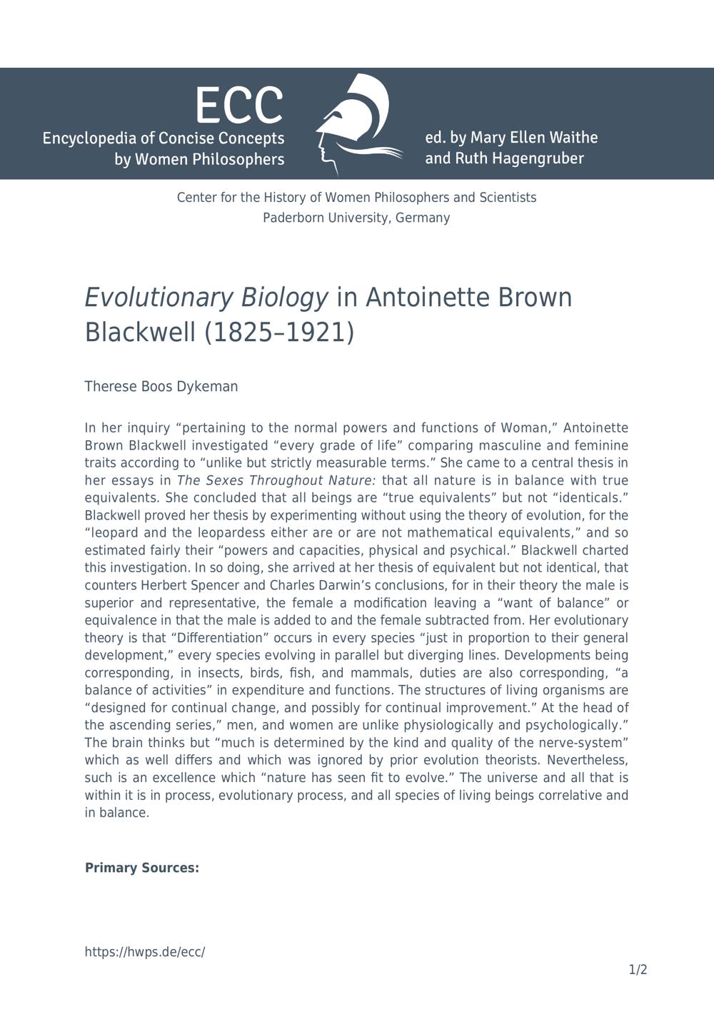 Evolutionary biology in Antoinette Brown Blackwell (1825-1921) / Therese Boos Dykeman