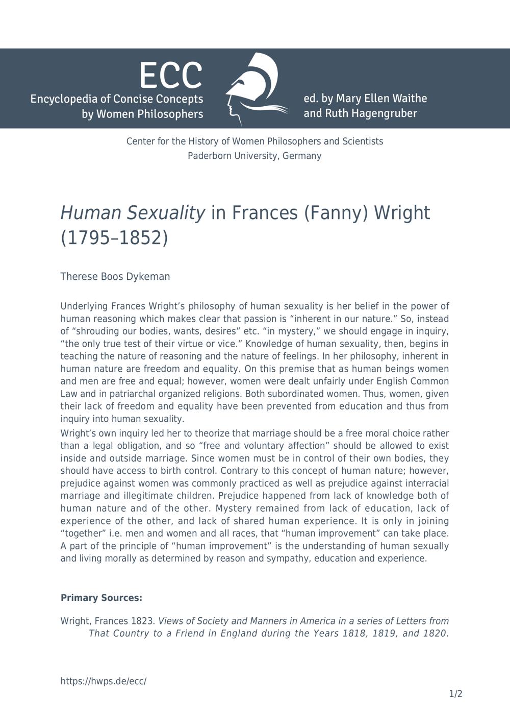 Human sexuality in Frances (Fanny) Wright (1795-1852) / Therese Boos Dykeman