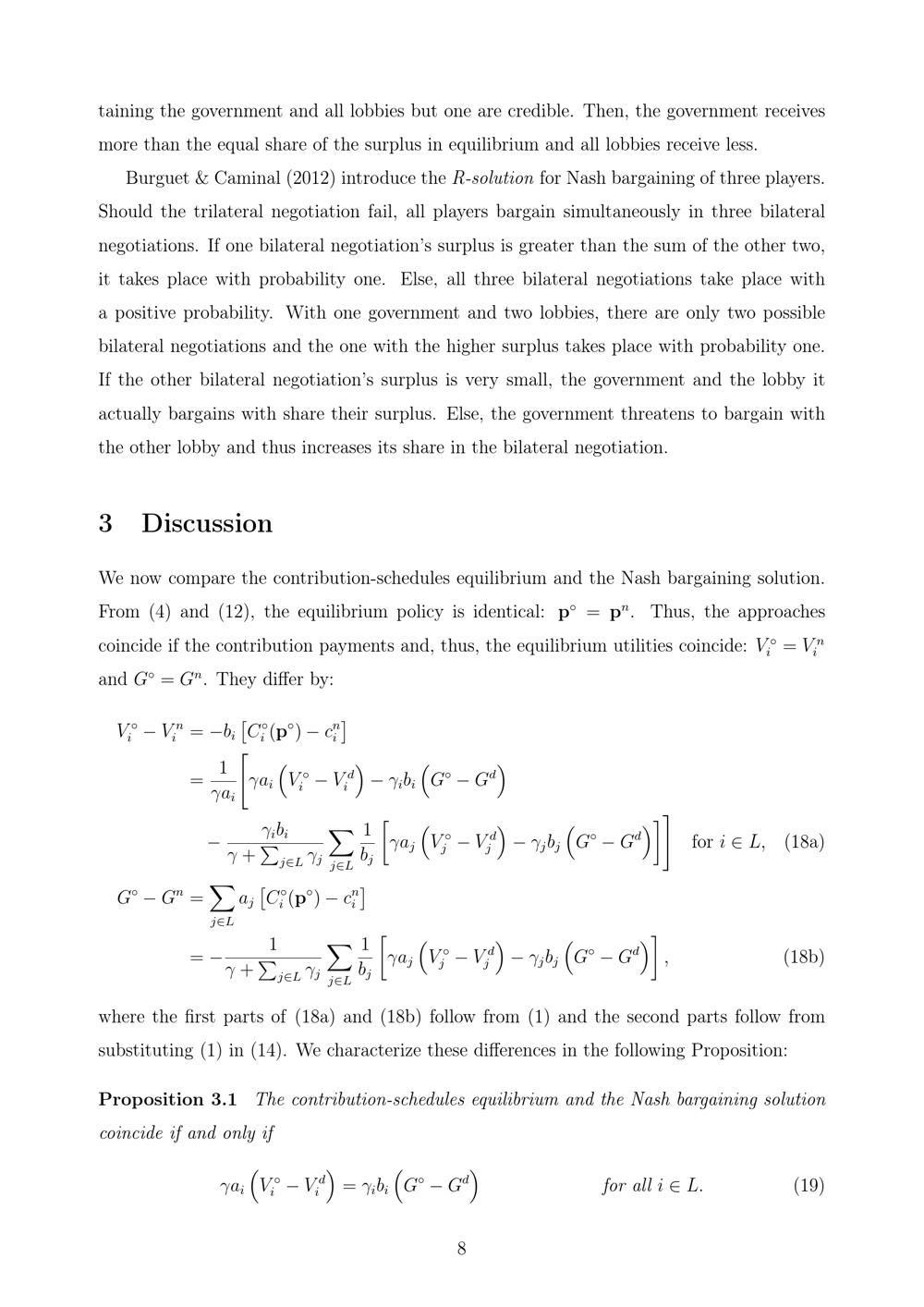 Special interest politics: Contribution schedules versus Nash bargaining