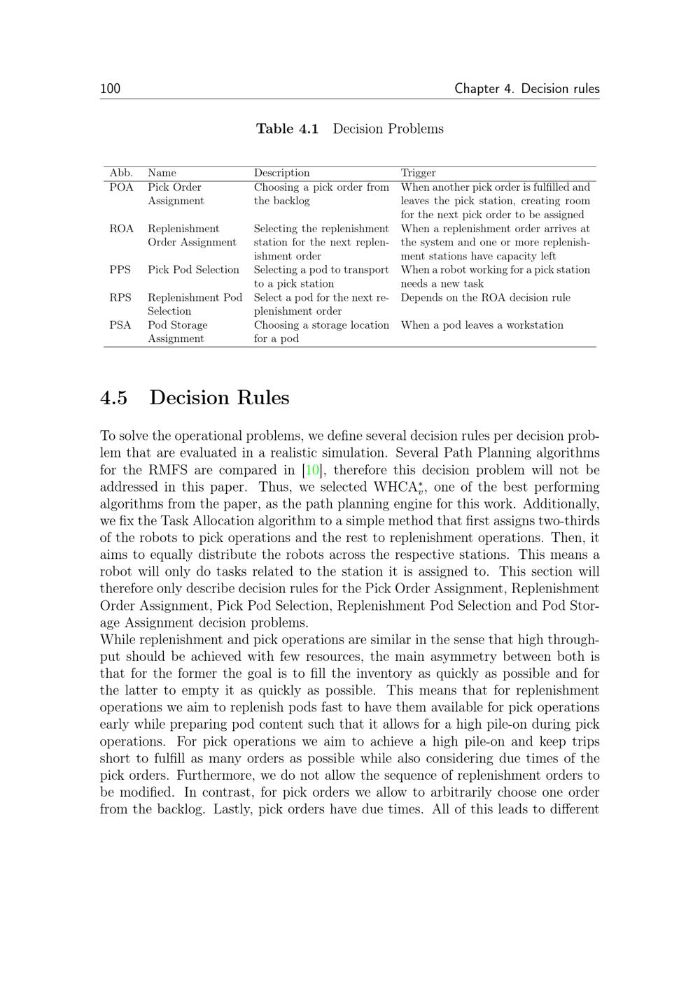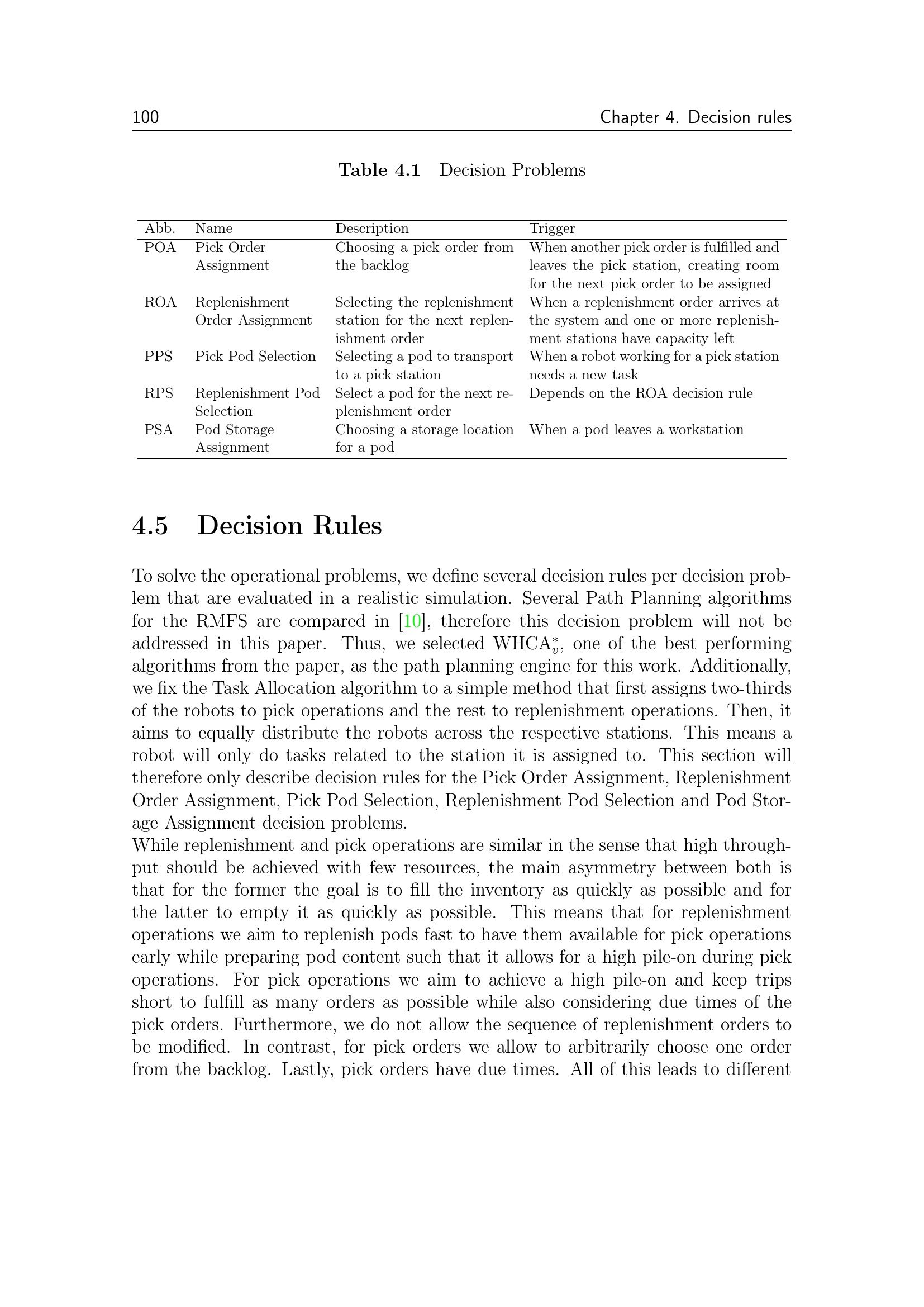 4 Decision rules for Robotic Mobile Fulfillment Systems