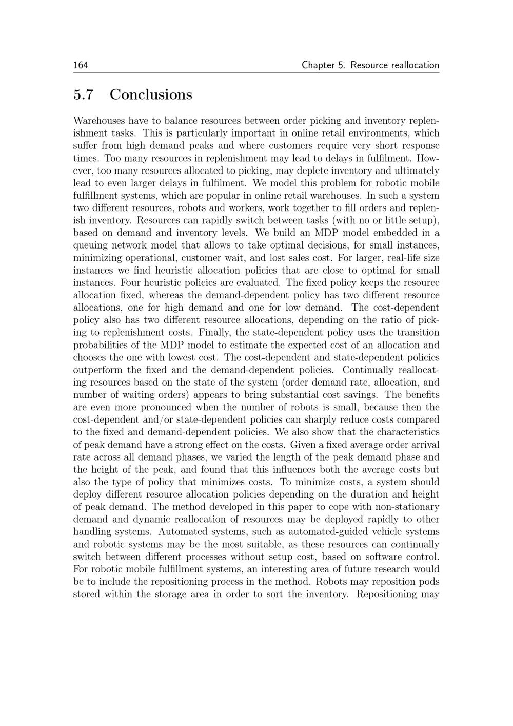 5 Dynamic Policies for Resource Reallocation in a Robotic Mobile Fulfillment System[...]