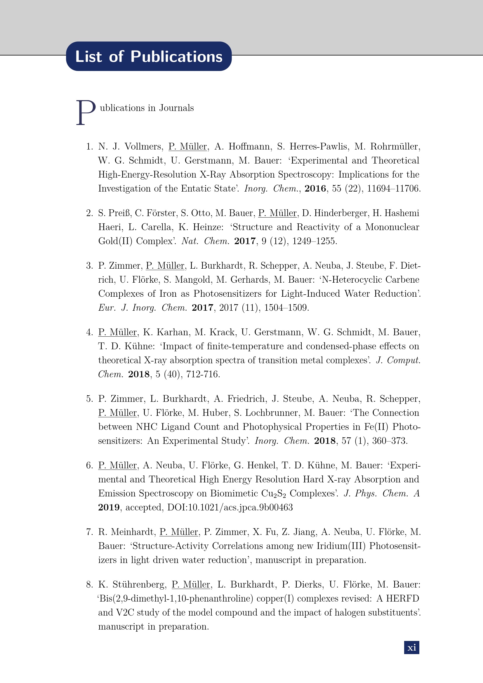 Experimental and theoretical (high energy resolution) X-ray absorption and emission spectroscopy / vorgelegt von Patrick Müller ; [Promotionskommission: Prof. Dr.-Ing. Hans-Joachim Warnecke, Vorsitz; Prof. Dr. Matthias Bauer, Erstgutachter; Prof. Dr. Thomas D. Kühne, Zweitgutachter; Prof. Dr. Wolf Gero Schmidt]