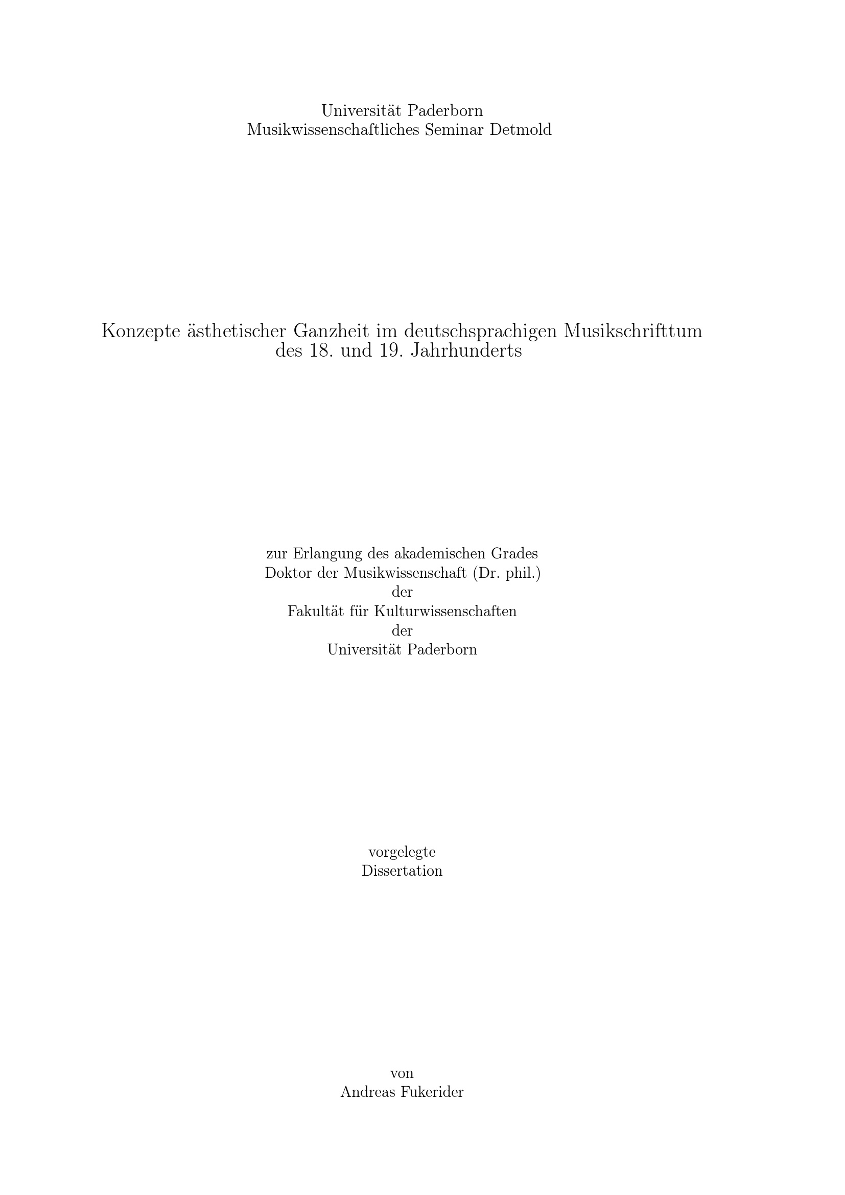 Konzepte ästhetischer Ganzheit im deutschsprachigen Musikschrifttum des 18. und 19. Jahrhunderts / von Andreas Fukerider