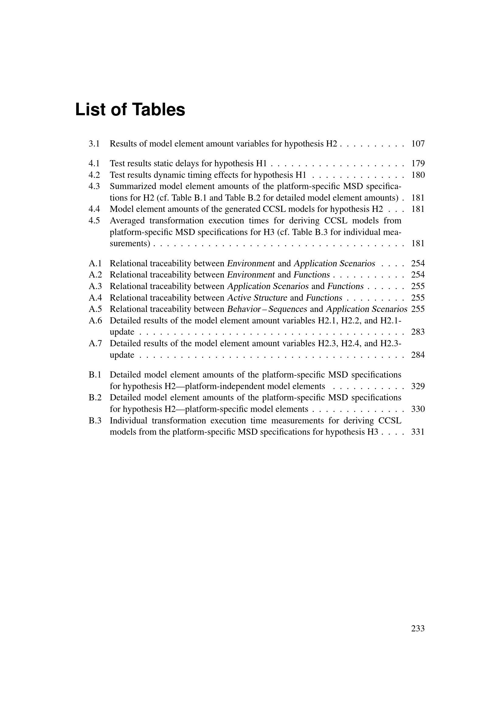 List of Tables