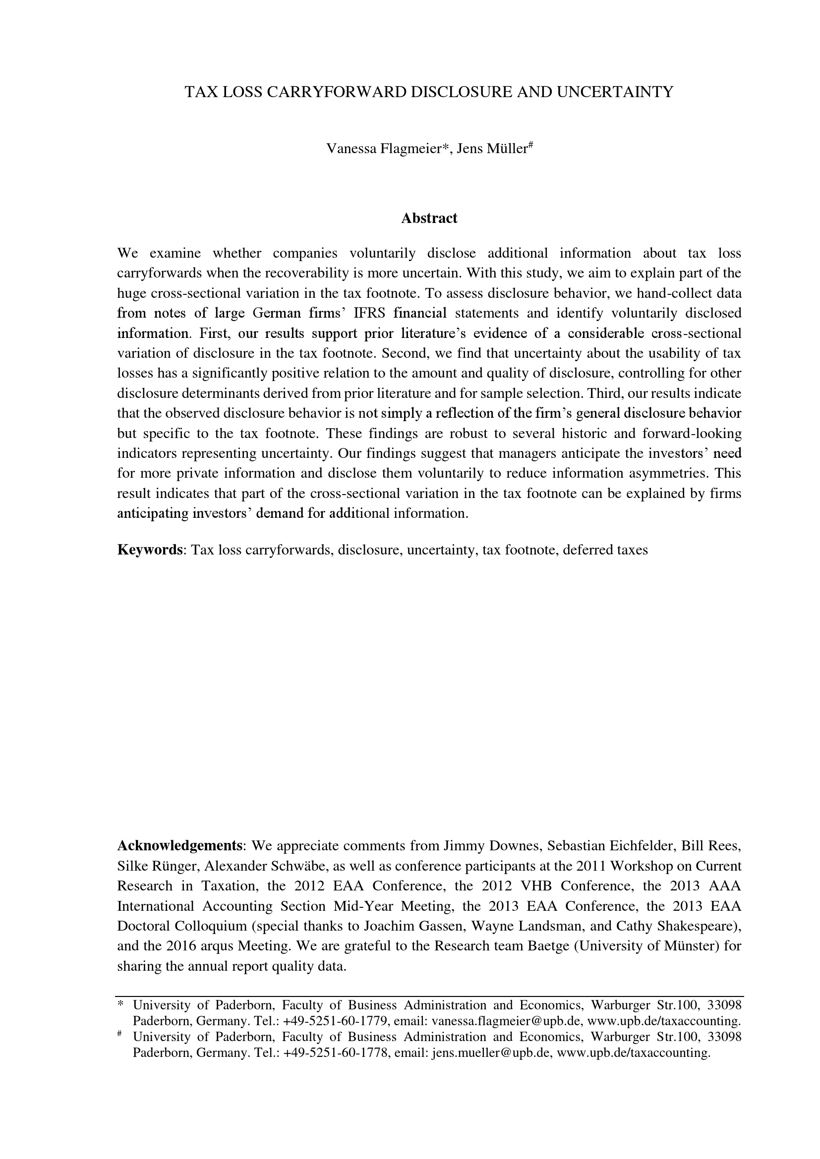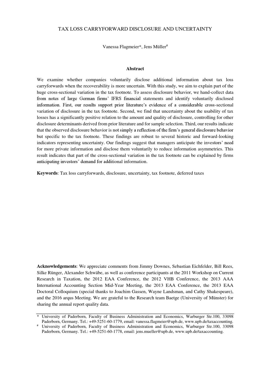 Tax loss carryforward disclosure and uncertainty / Vanessa Flagmeier, Jens Müller