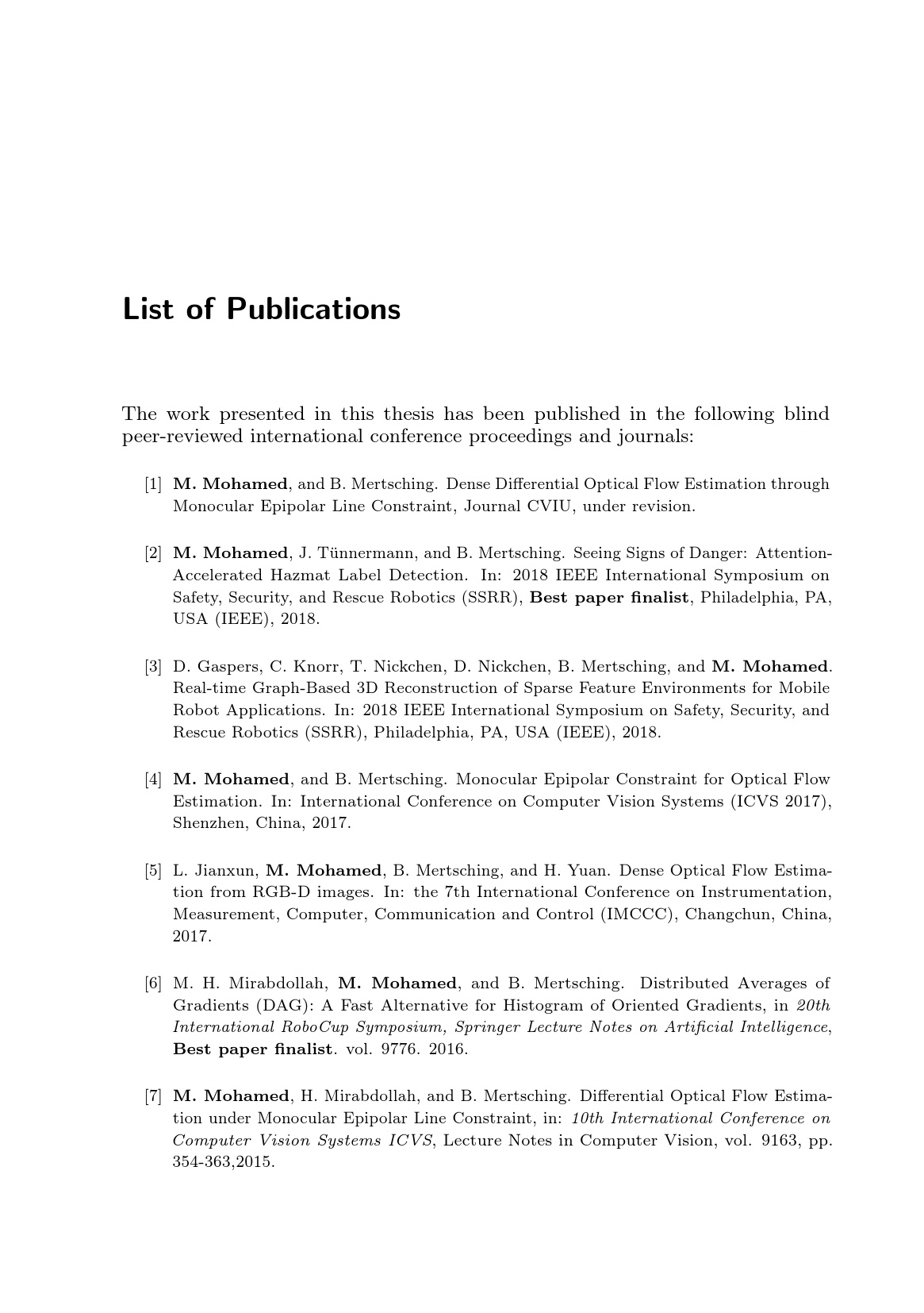 Robust motion estimation for qualitative dynamic scene analysis / von MSc-EE. Mahmoud Ali Ahmed Mohamed ; Erster Gutachter: Prof. Dr.-Ing. Bärbel Mertsching, Zweiter Gutachter: Prof. Dr. Domenec Puig