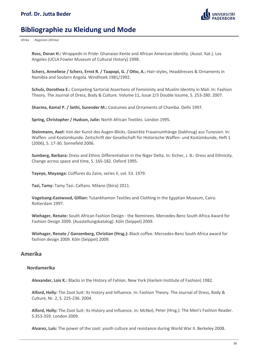 Bibliographie zu Kleidung und Mode / Prof. Dr. Jutta Beder