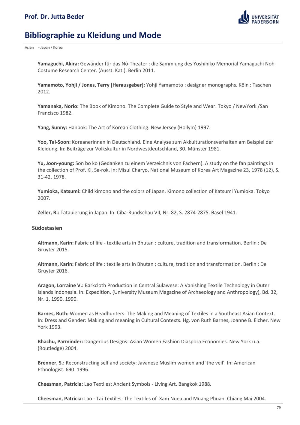 Bibliographie zu Kleidung und Mode / Prof. Dr. Jutta Beder