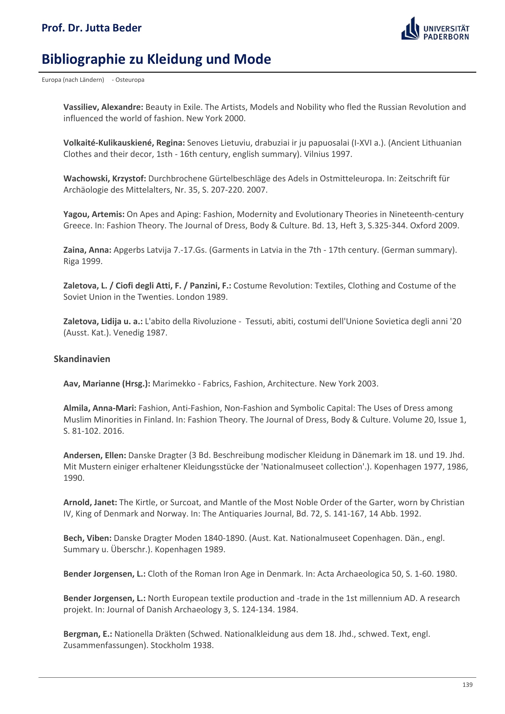 Bibliographie zu Kleidung und Mode / Prof. Dr. Jutta Beder