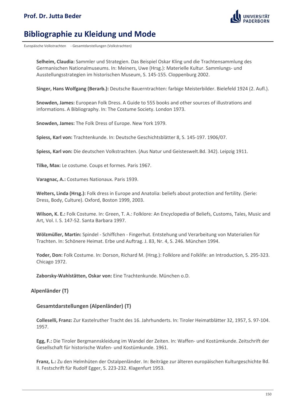 Bibliographie zu Kleidung und Mode / Prof. Dr. Jutta Beder
