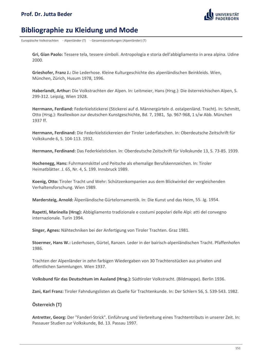Bibliographie zu Kleidung und Mode / Prof. Dr. Jutta Beder