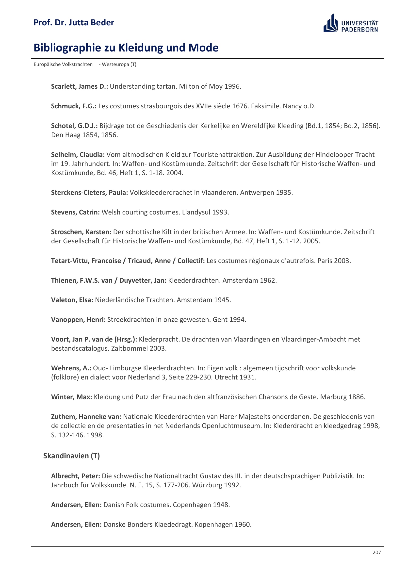 Bibliographie zu Kleidung und Mode / Prof. Dr. Jutta Beder