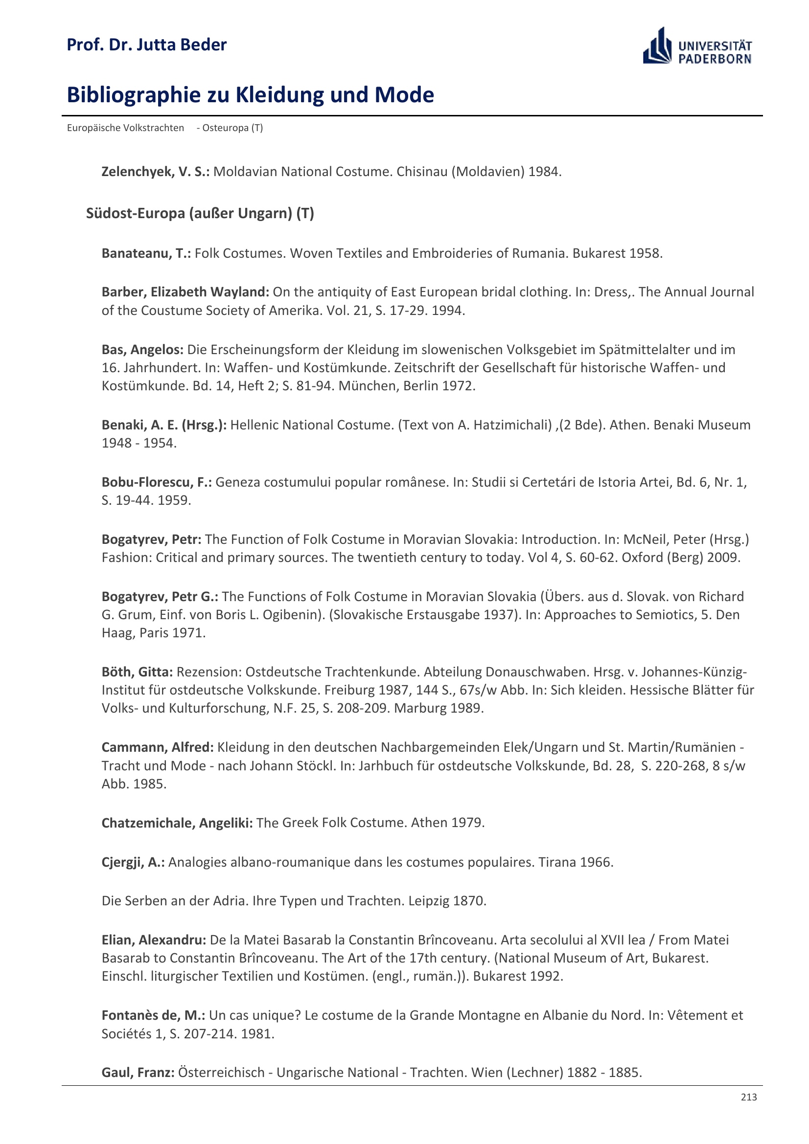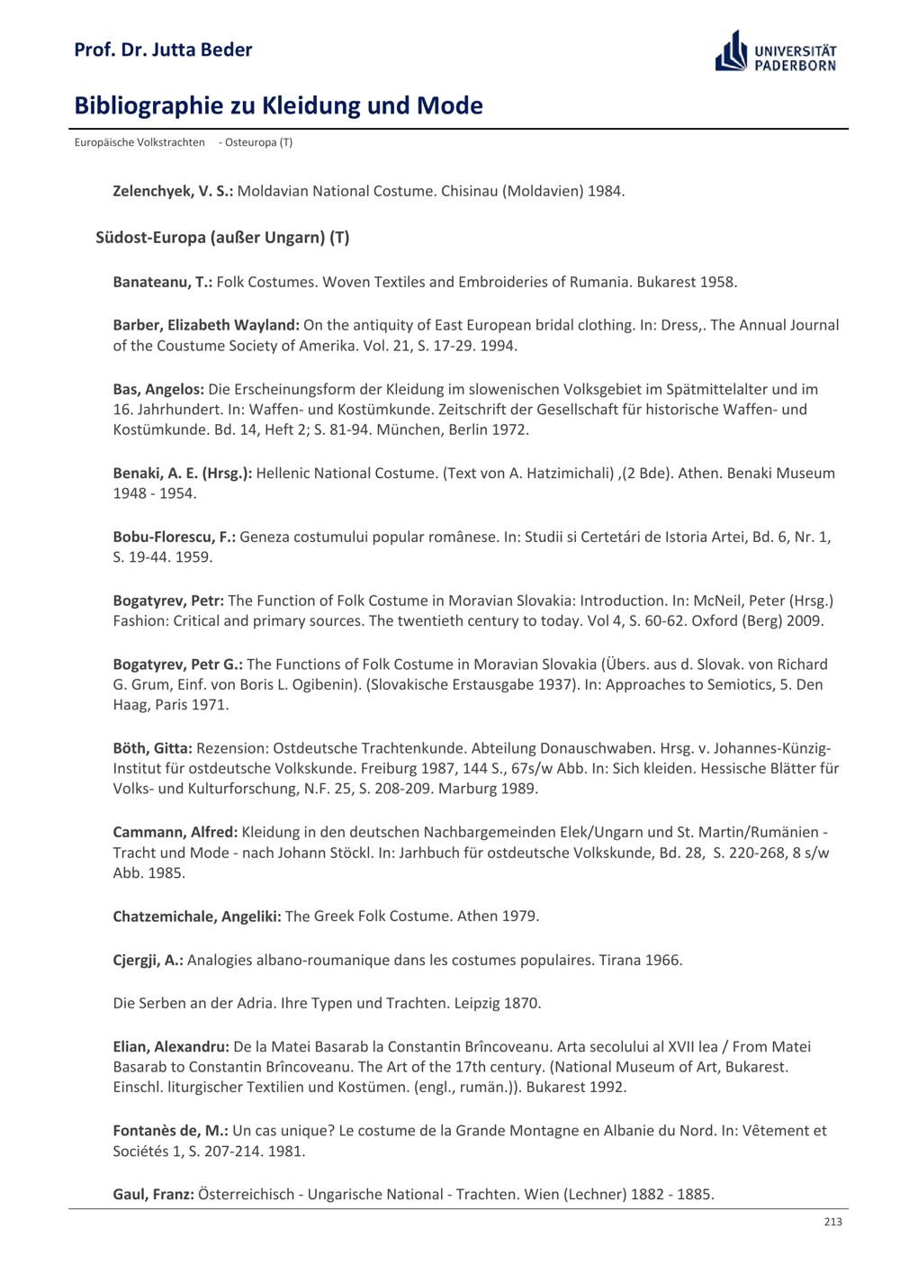 Bibliographie zu Kleidung und Mode / Prof. Dr. Jutta Beder