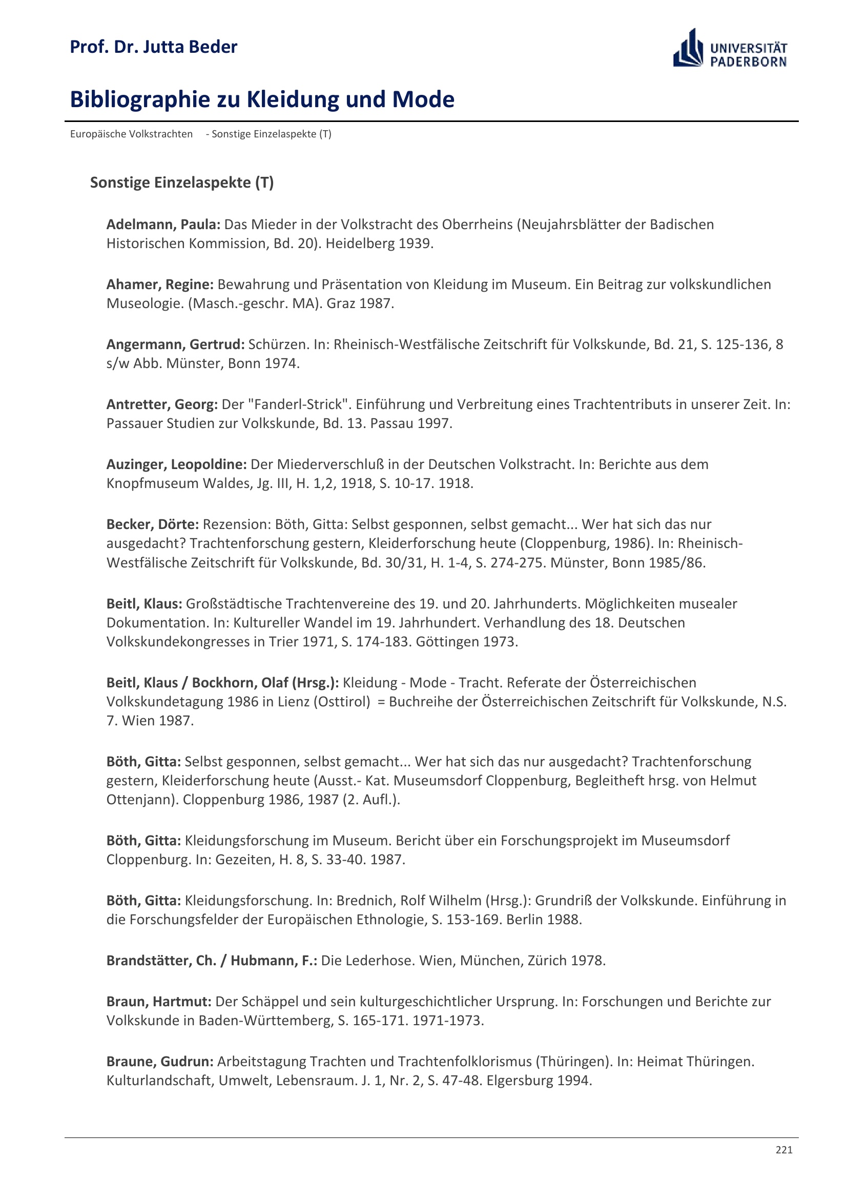 Bibliographie zu Kleidung und Mode / Prof. Dr. Jutta Beder