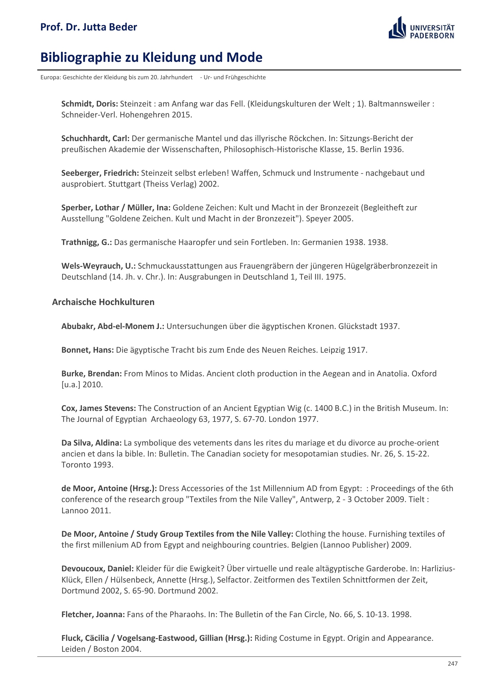 Bibliographie zu Kleidung und Mode / Prof. Dr. Jutta Beder