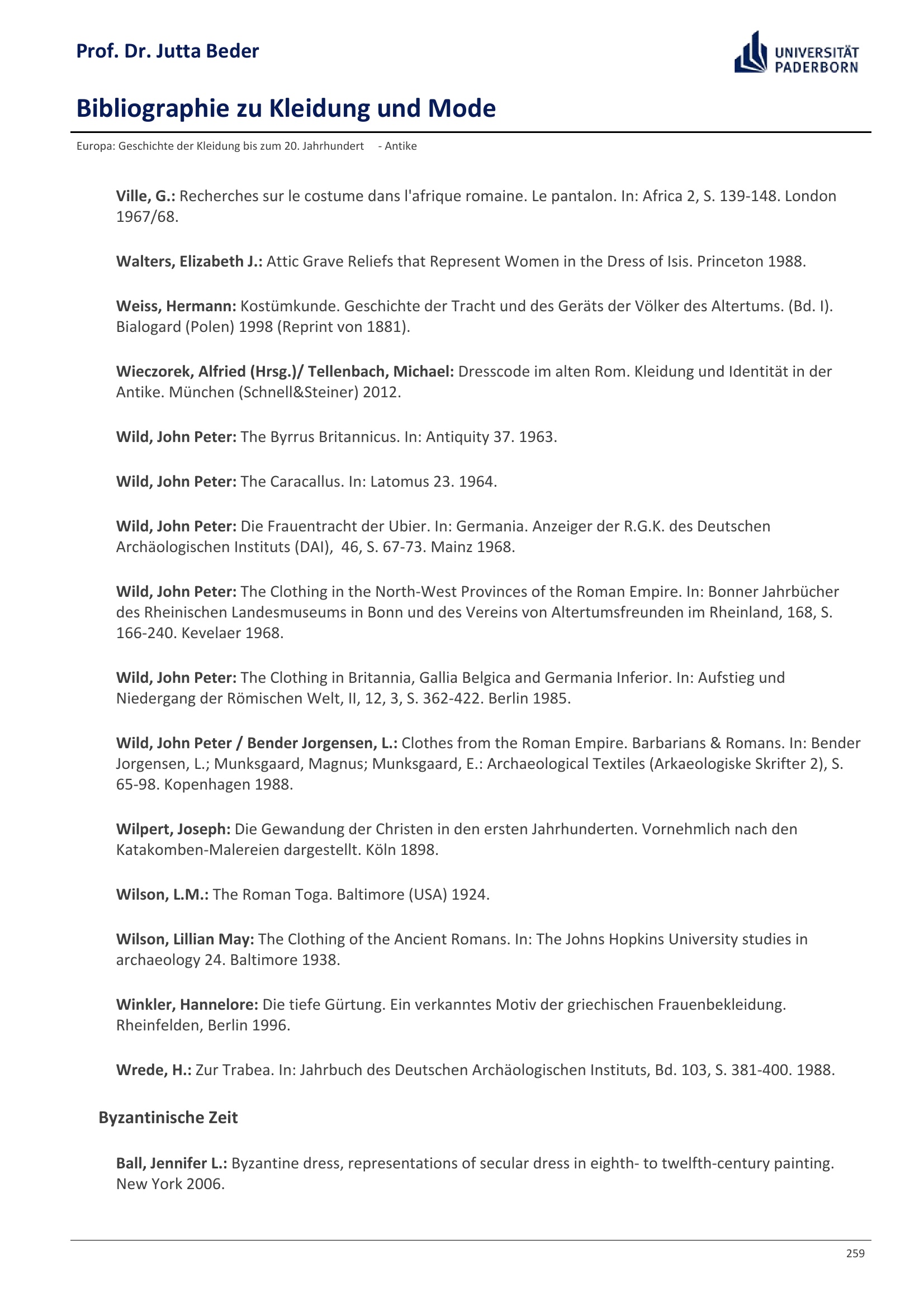 Bibliographie zu Kleidung und Mode / Prof. Dr. Jutta Beder