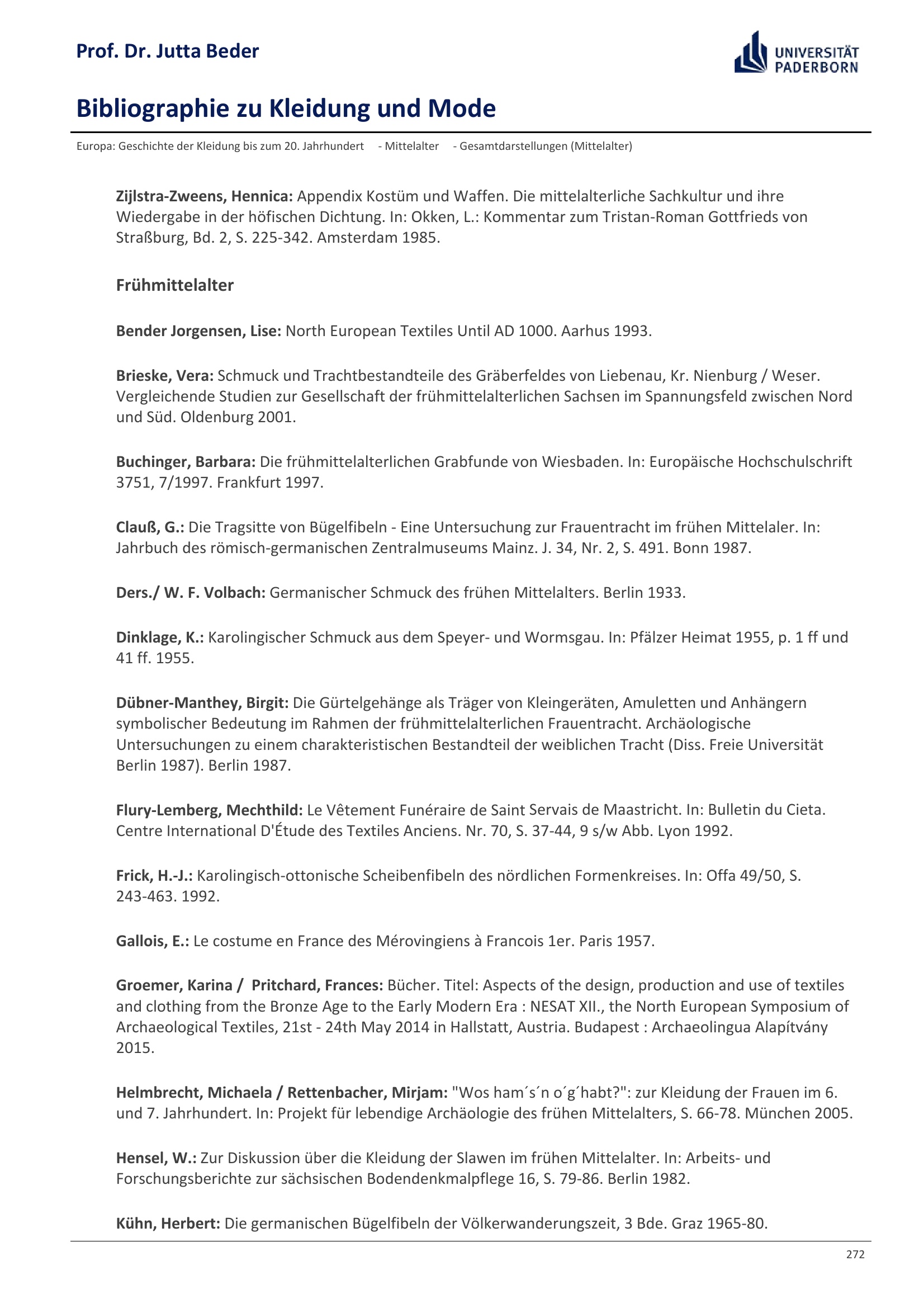 Bibliographie zu Kleidung und Mode / Prof. Dr. Jutta Beder