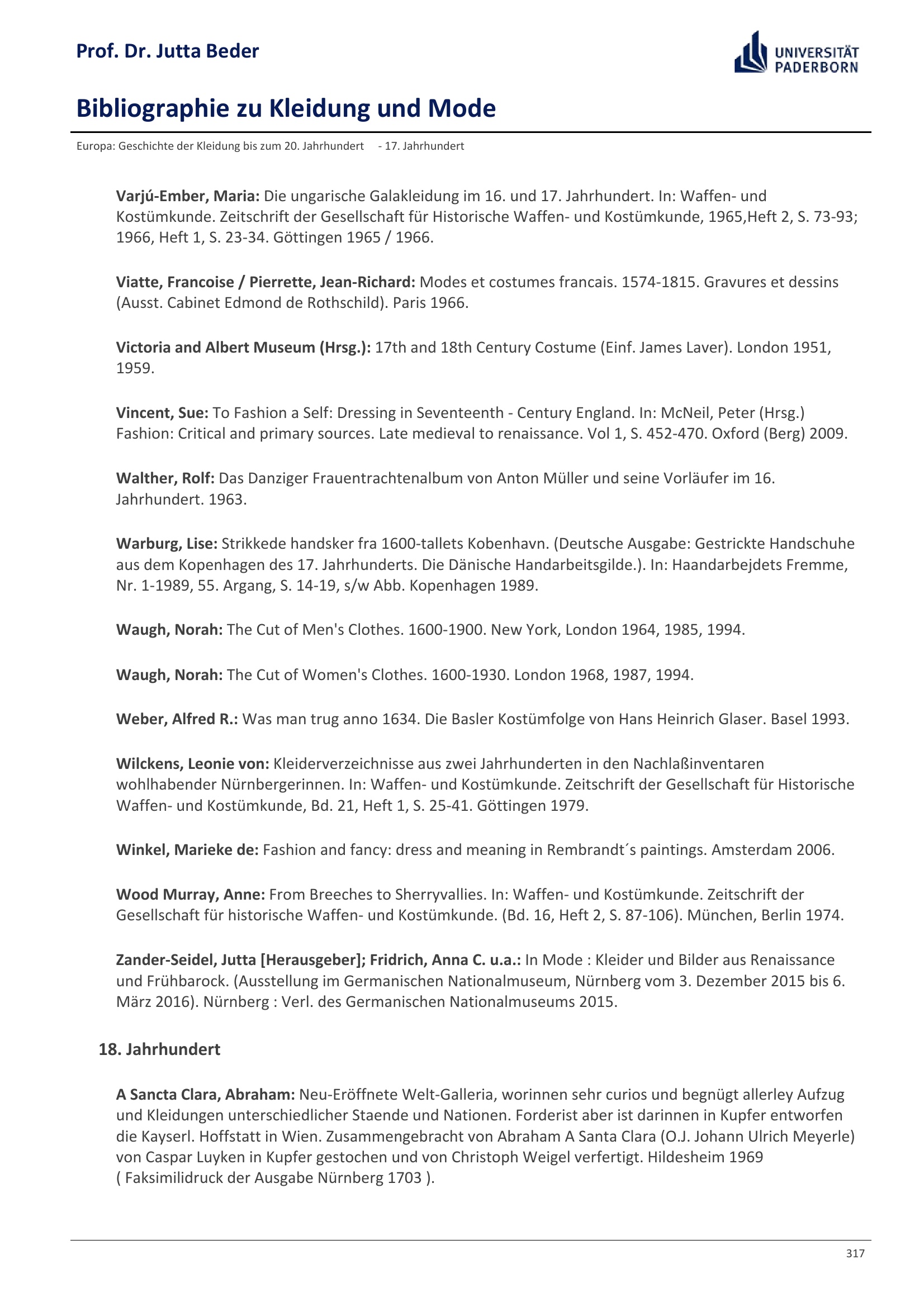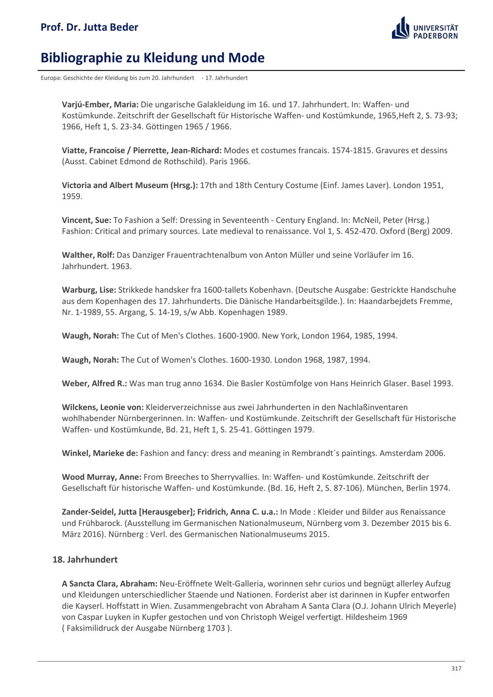 Bibliographie zu Kleidung und Mode / Prof. Dr. Jutta Beder
