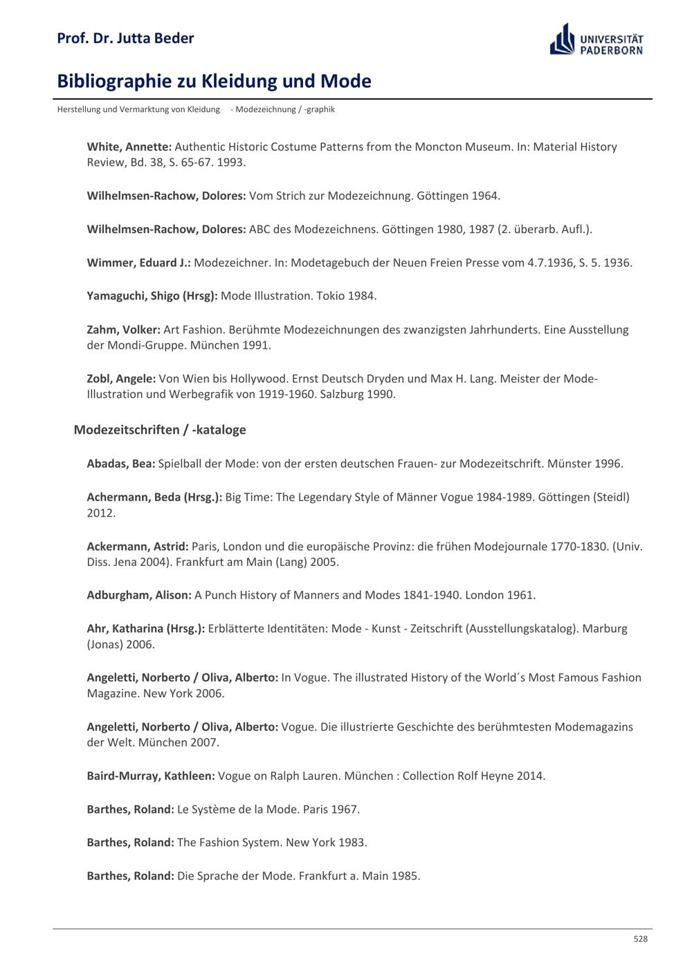 Bibliographie zu Kleidung und Mode / Prof. Dr. Jutta Beder