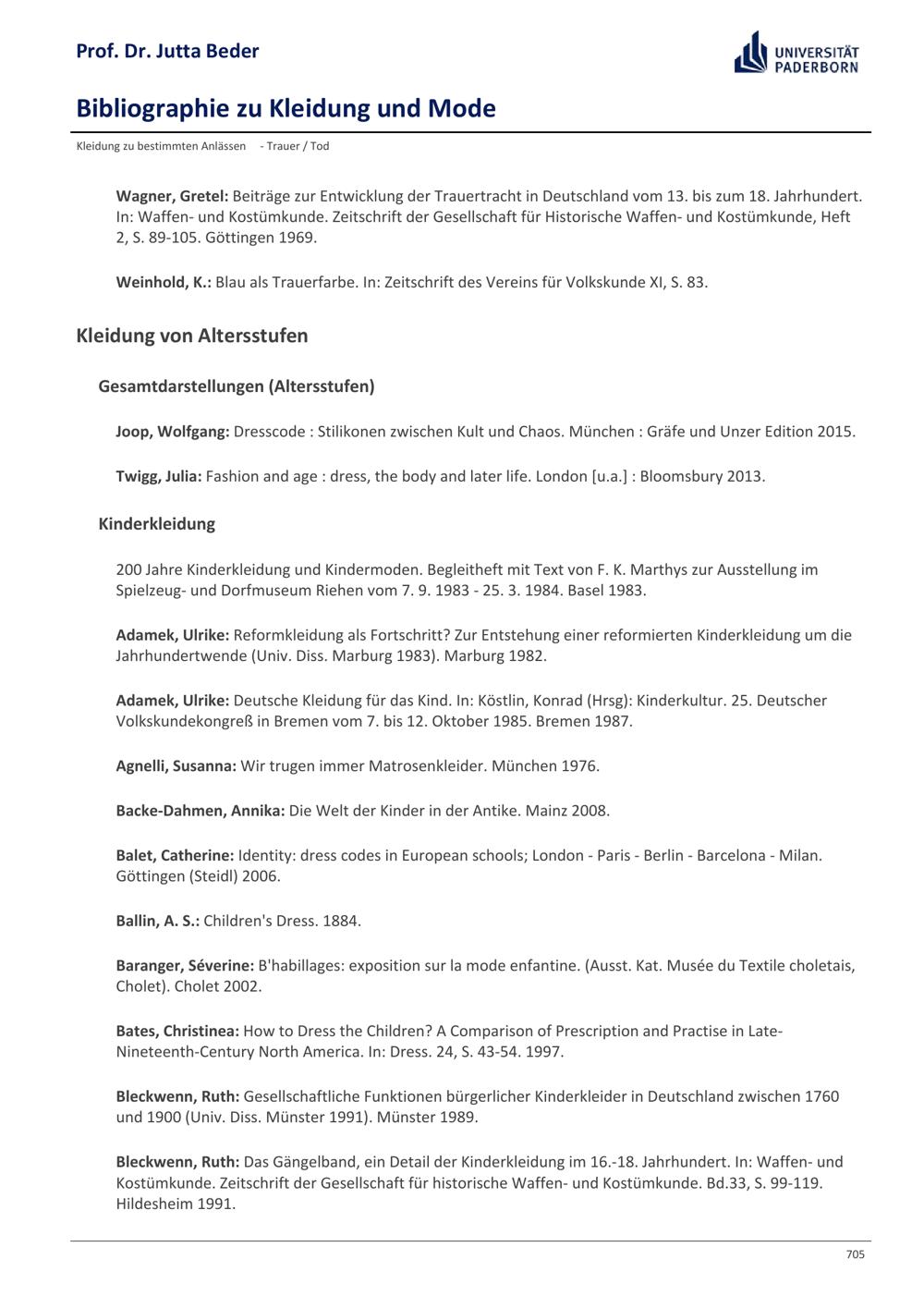 Bibliographie zu Kleidung und Mode / Prof. Dr. Jutta Beder