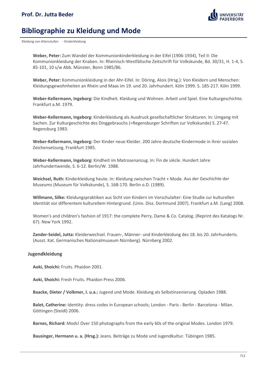 Bibliographie zu Kleidung und Mode / Prof. Dr. Jutta Beder