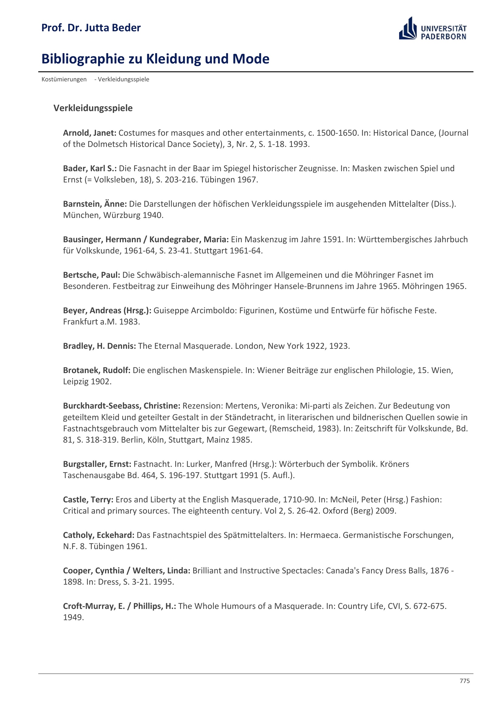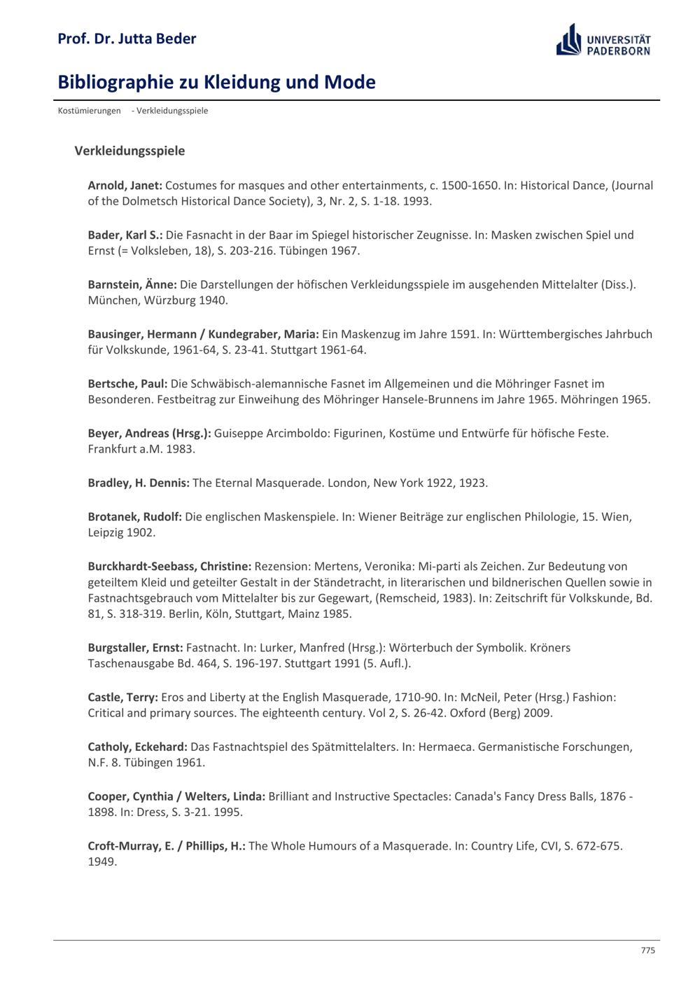 Bibliographie zu Kleidung und Mode / Prof. Dr. Jutta Beder