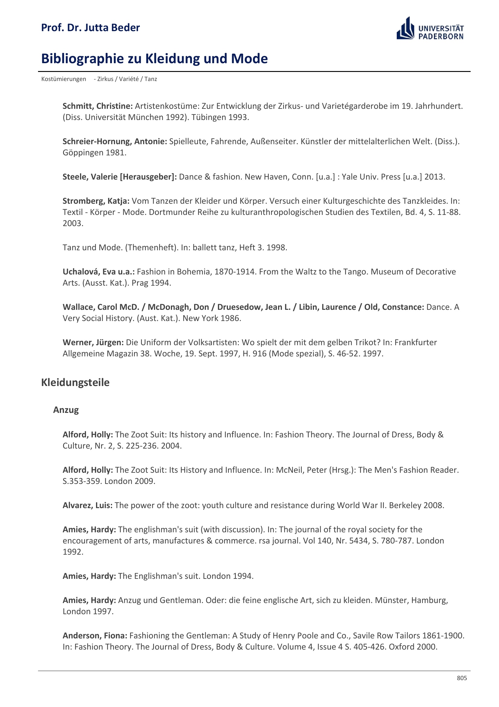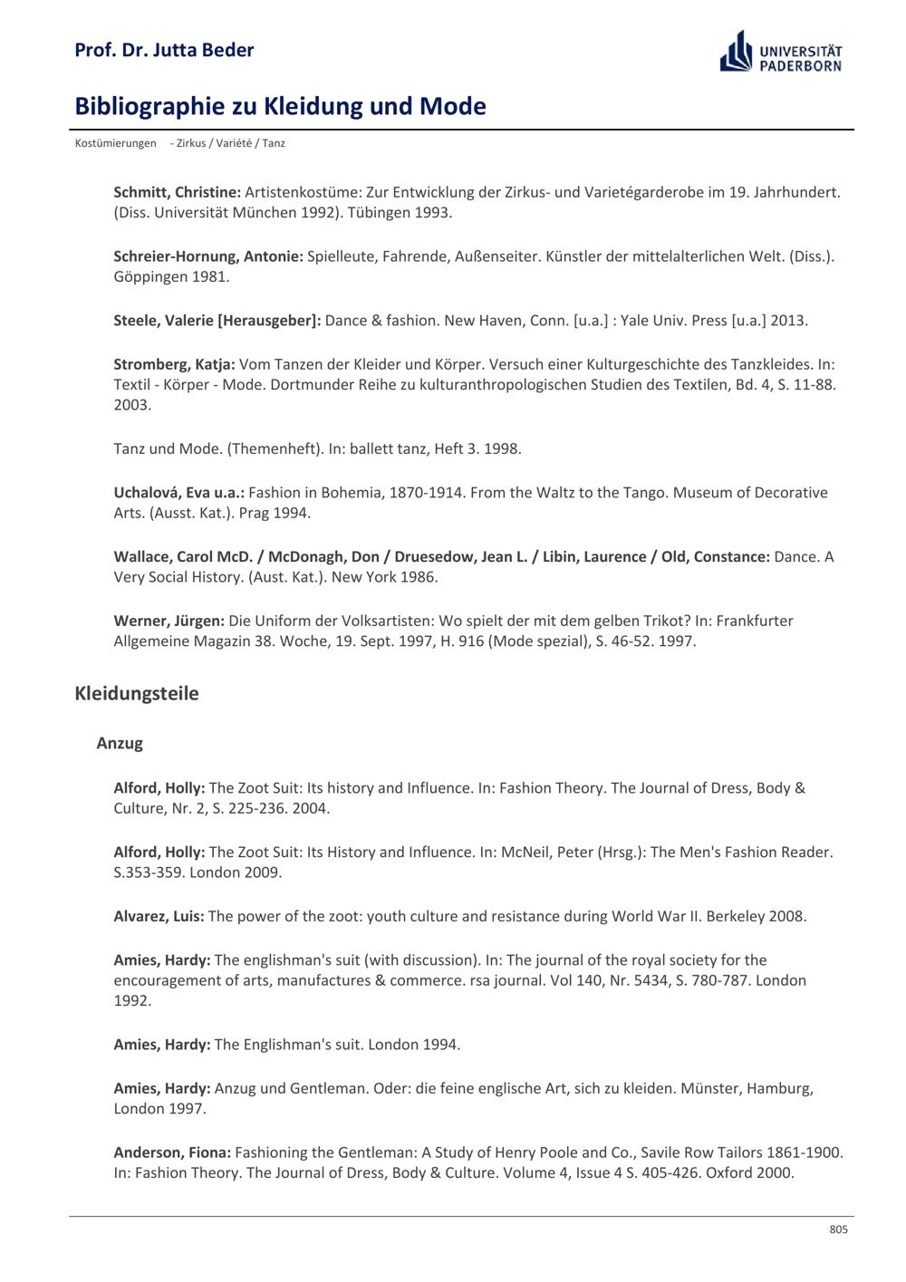 Bibliographie zu Kleidung und Mode / Prof. Dr. Jutta Beder