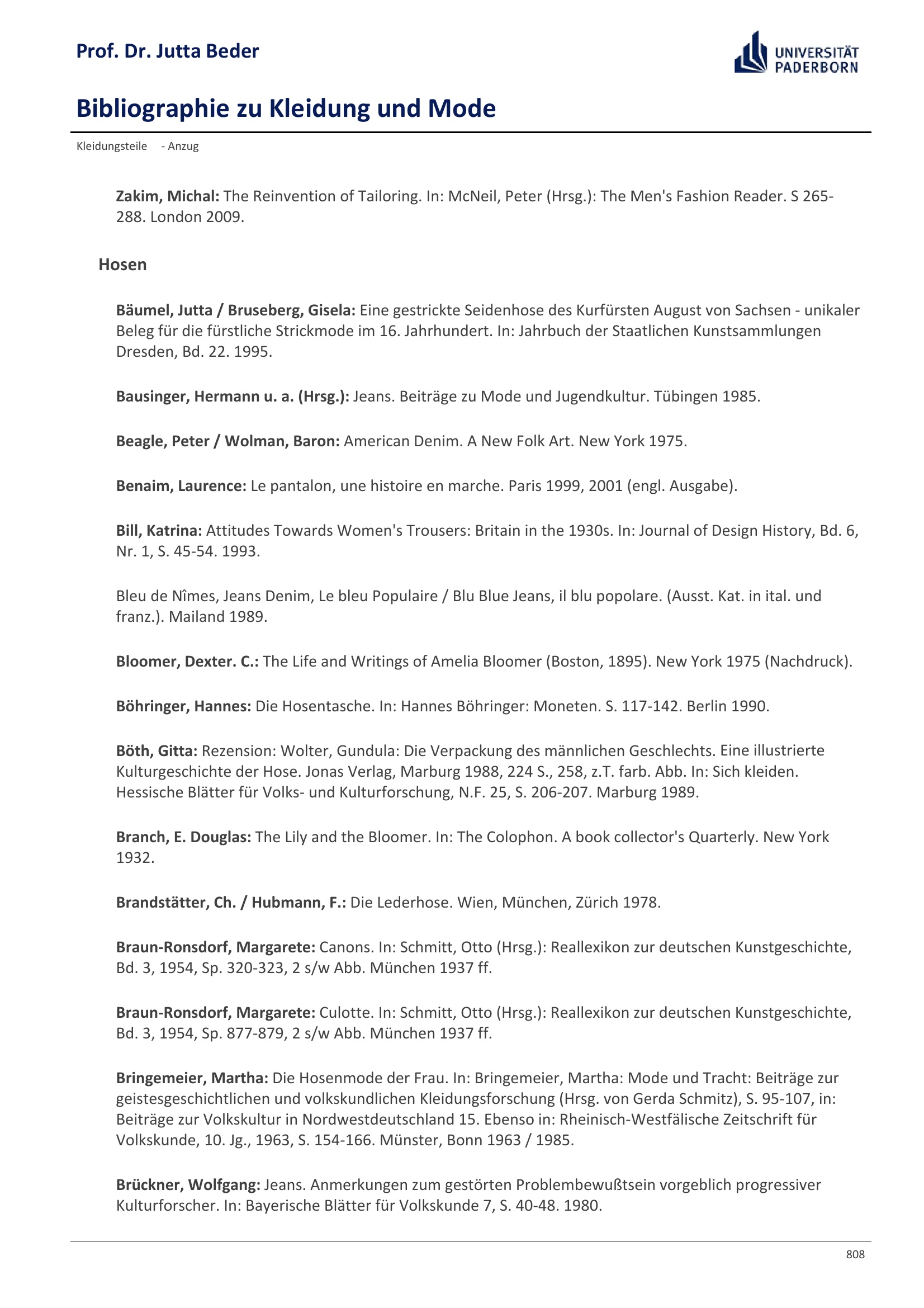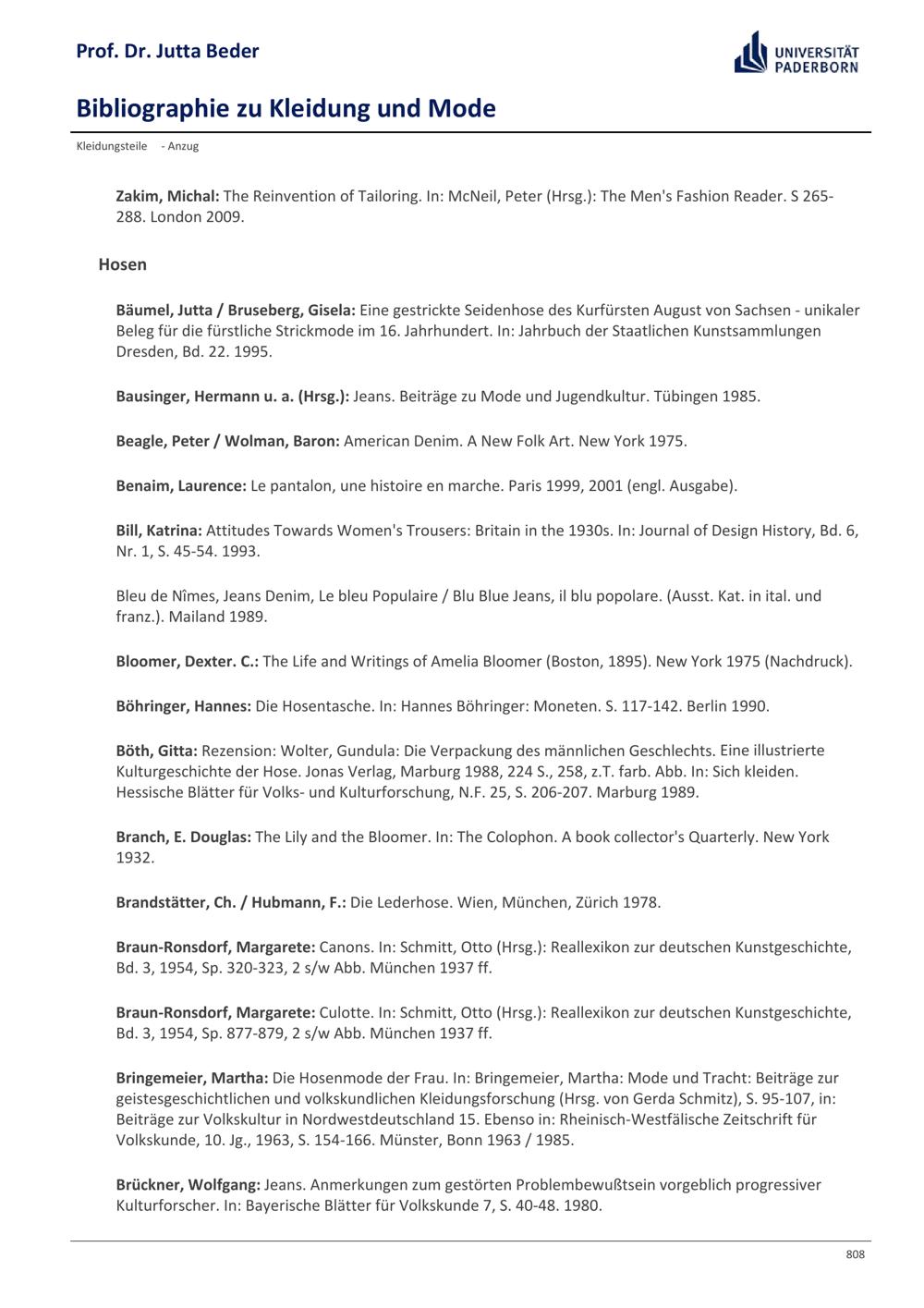 Bibliographie zu Kleidung und Mode / Prof. Dr. Jutta Beder