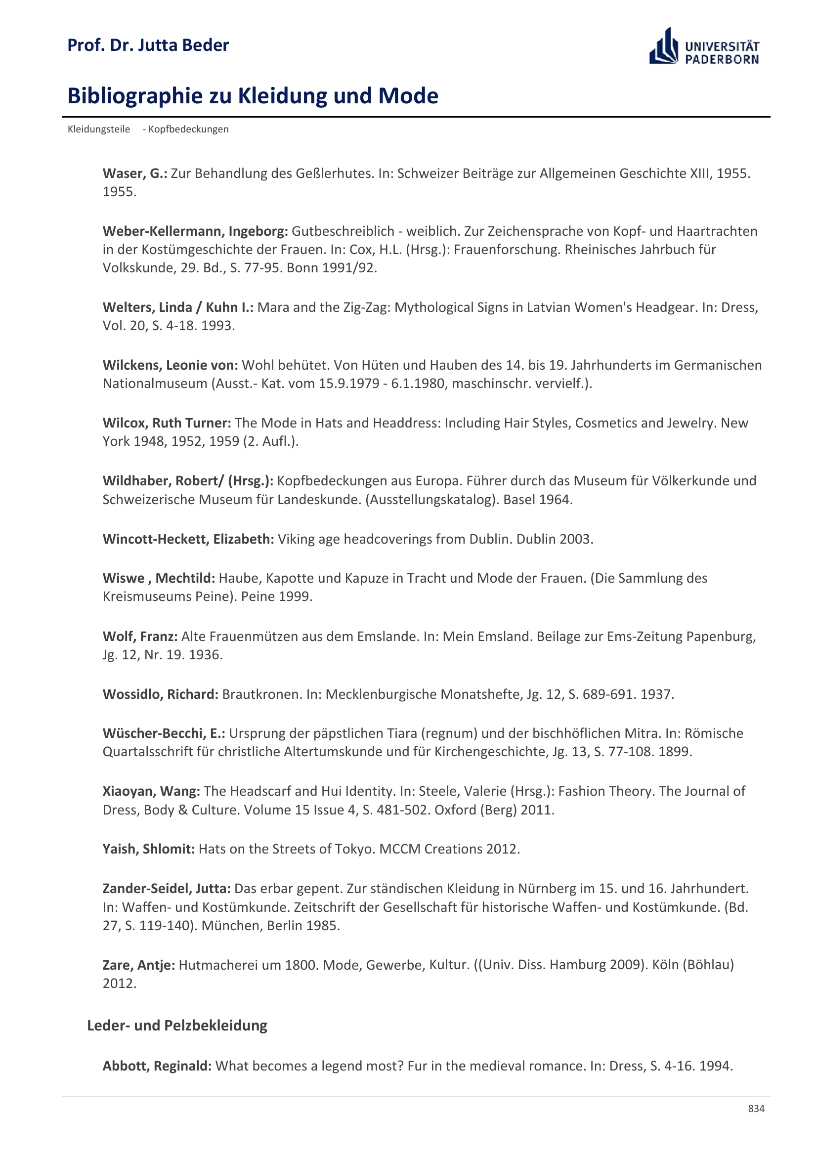 Bibliographie zu Kleidung und Mode / Prof. Dr. Jutta Beder