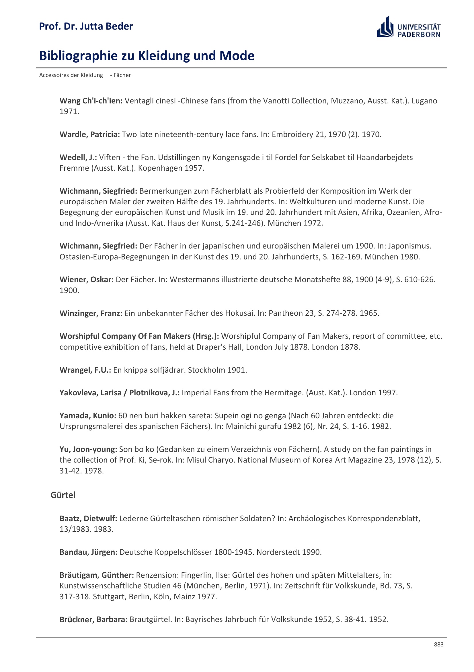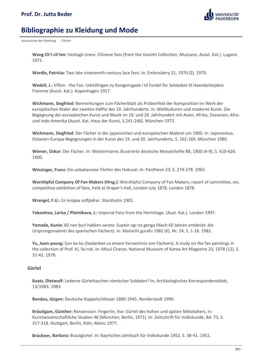 Bibliographie zu Kleidung und Mode / Prof. Dr. Jutta Beder