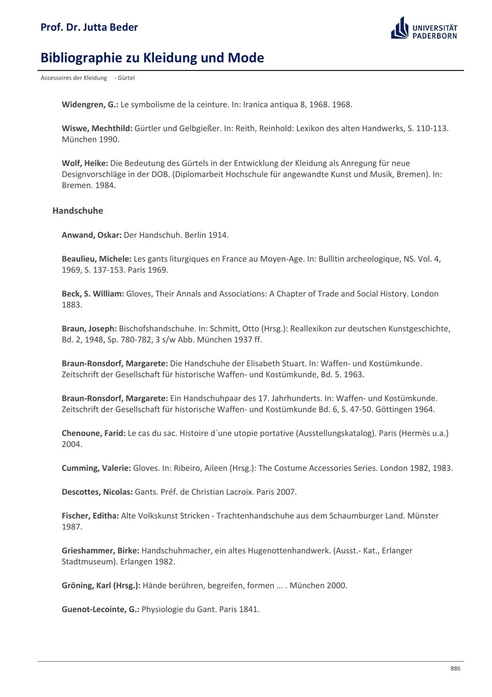 Bibliographie zu Kleidung und Mode / Prof. Dr. Jutta Beder
