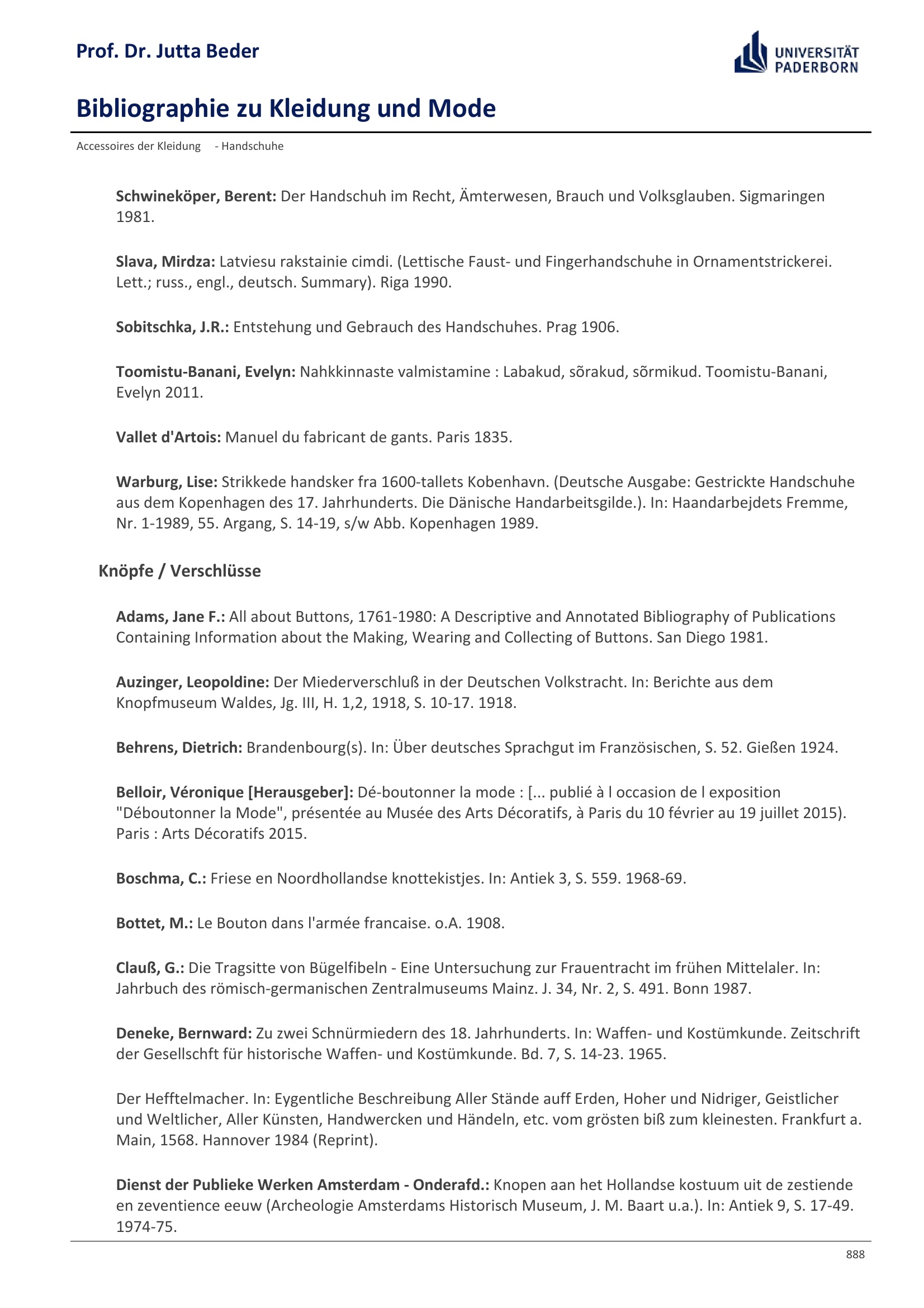 Bibliographie zu Kleidung und Mode / Prof. Dr. Jutta Beder