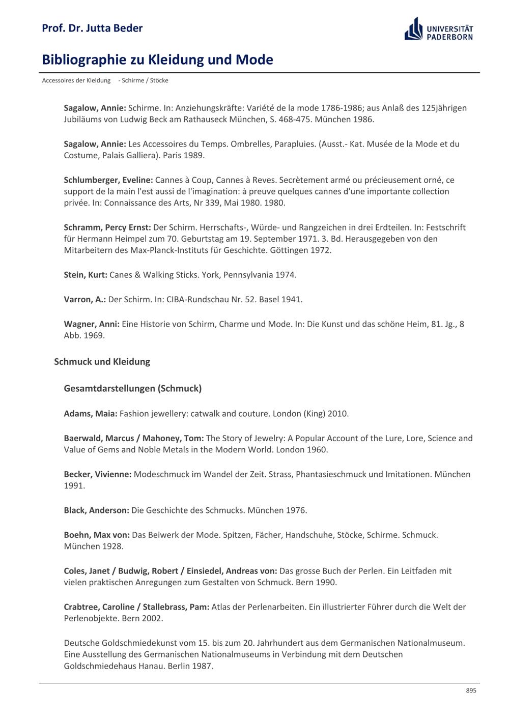 Bibliographie zu Kleidung und Mode / Prof. Dr. Jutta Beder