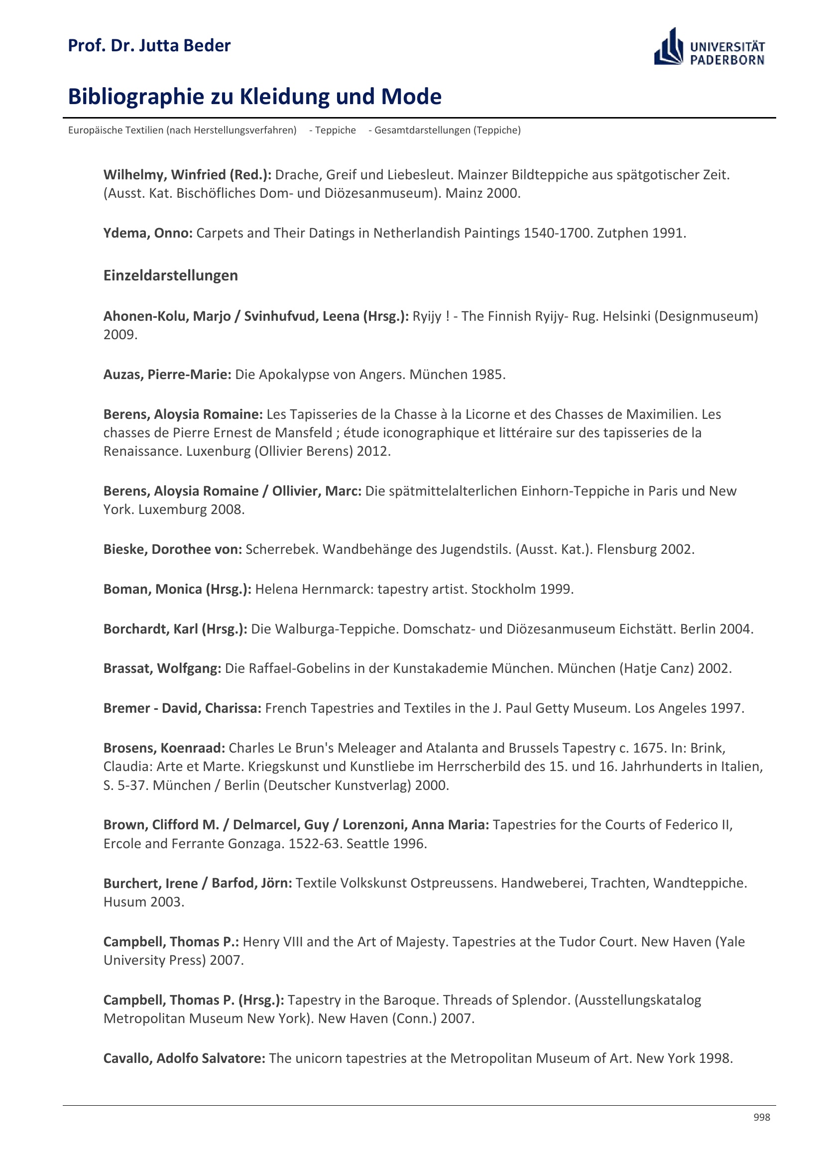 Bibliographie zu Kleidung und Mode / Prof. Dr. Jutta Beder
