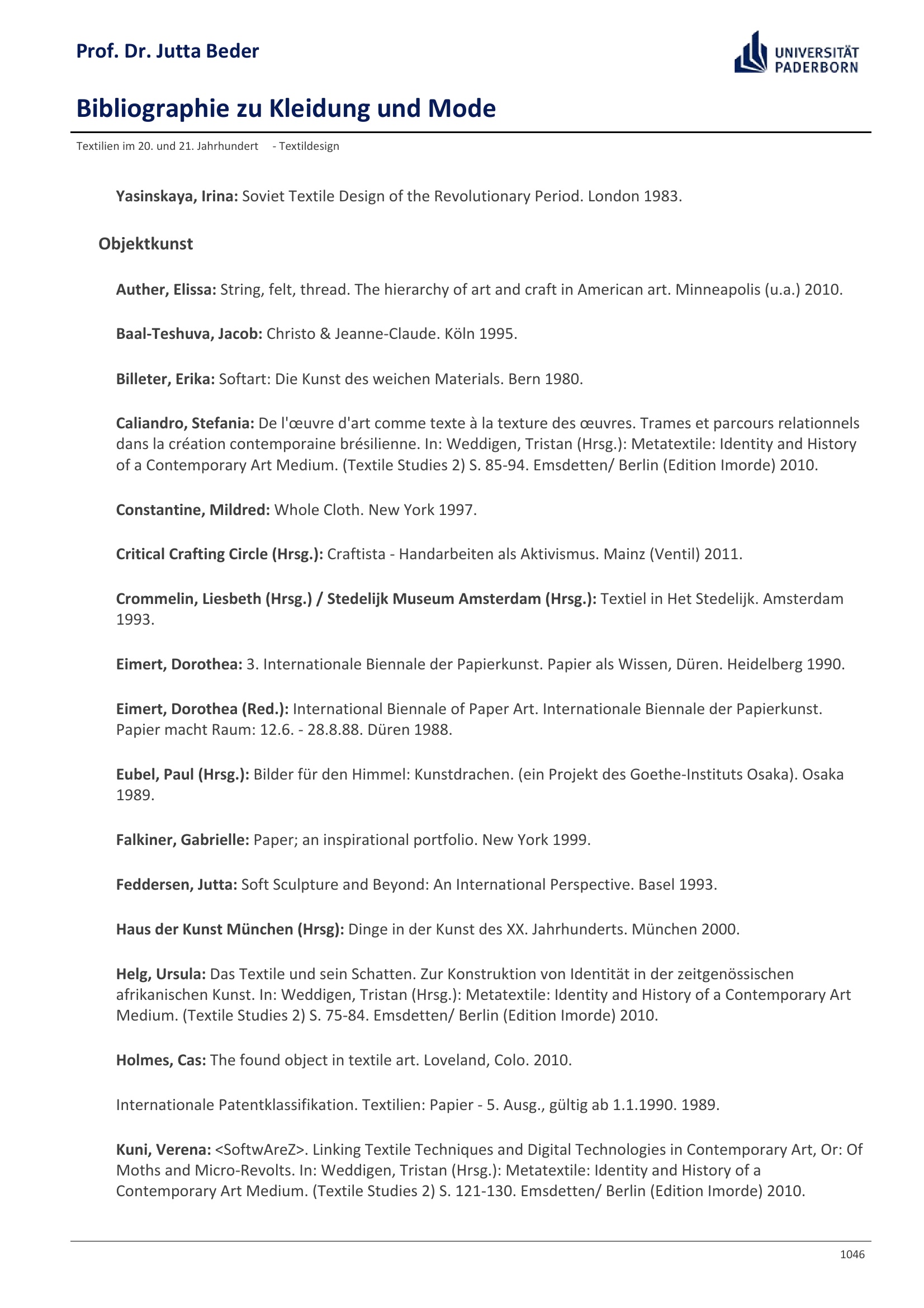Bibliographie zu Kleidung und Mode / Prof. Dr. Jutta Beder