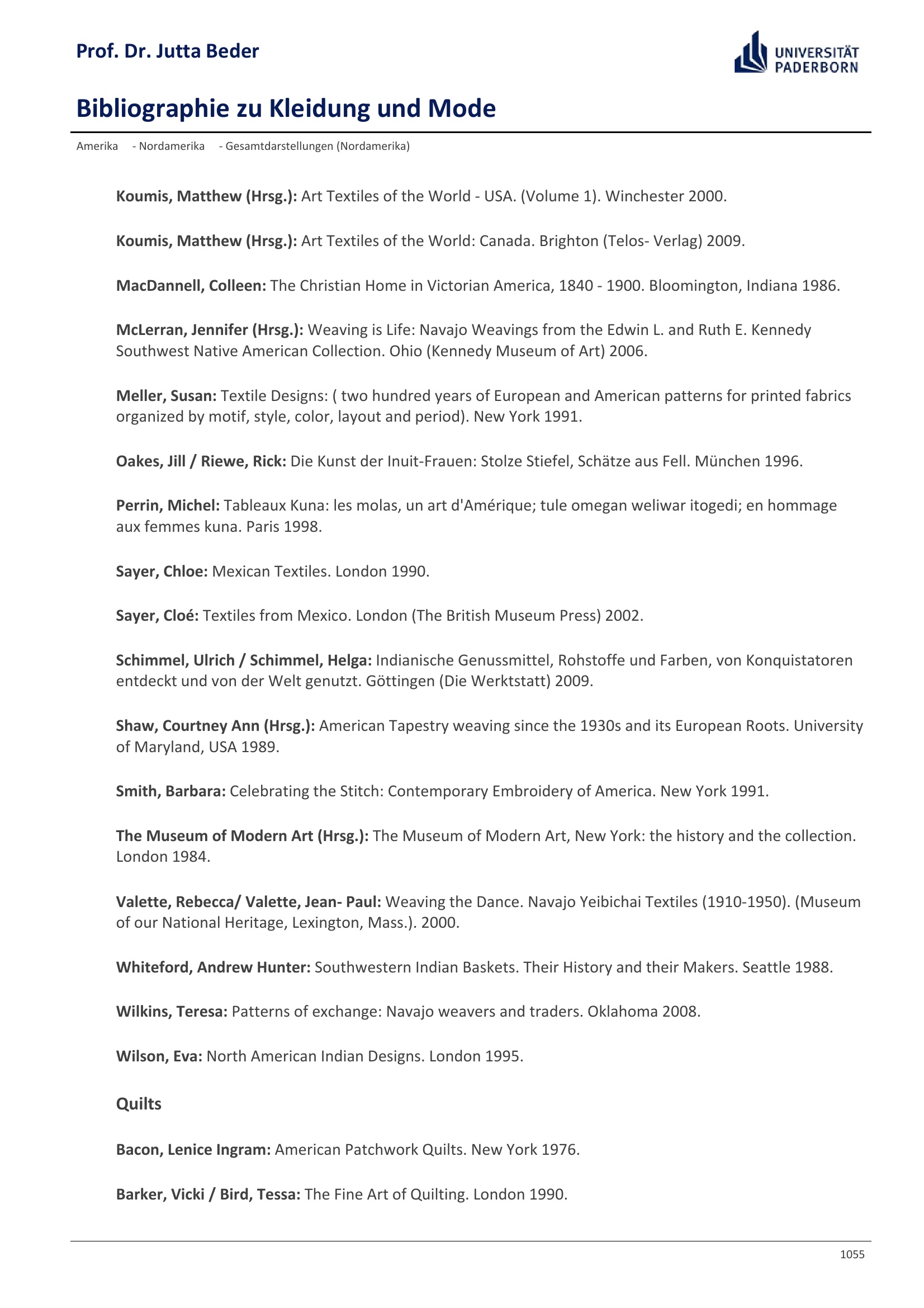 Bibliographie zu Kleidung und Mode / Prof. Dr. Jutta Beder