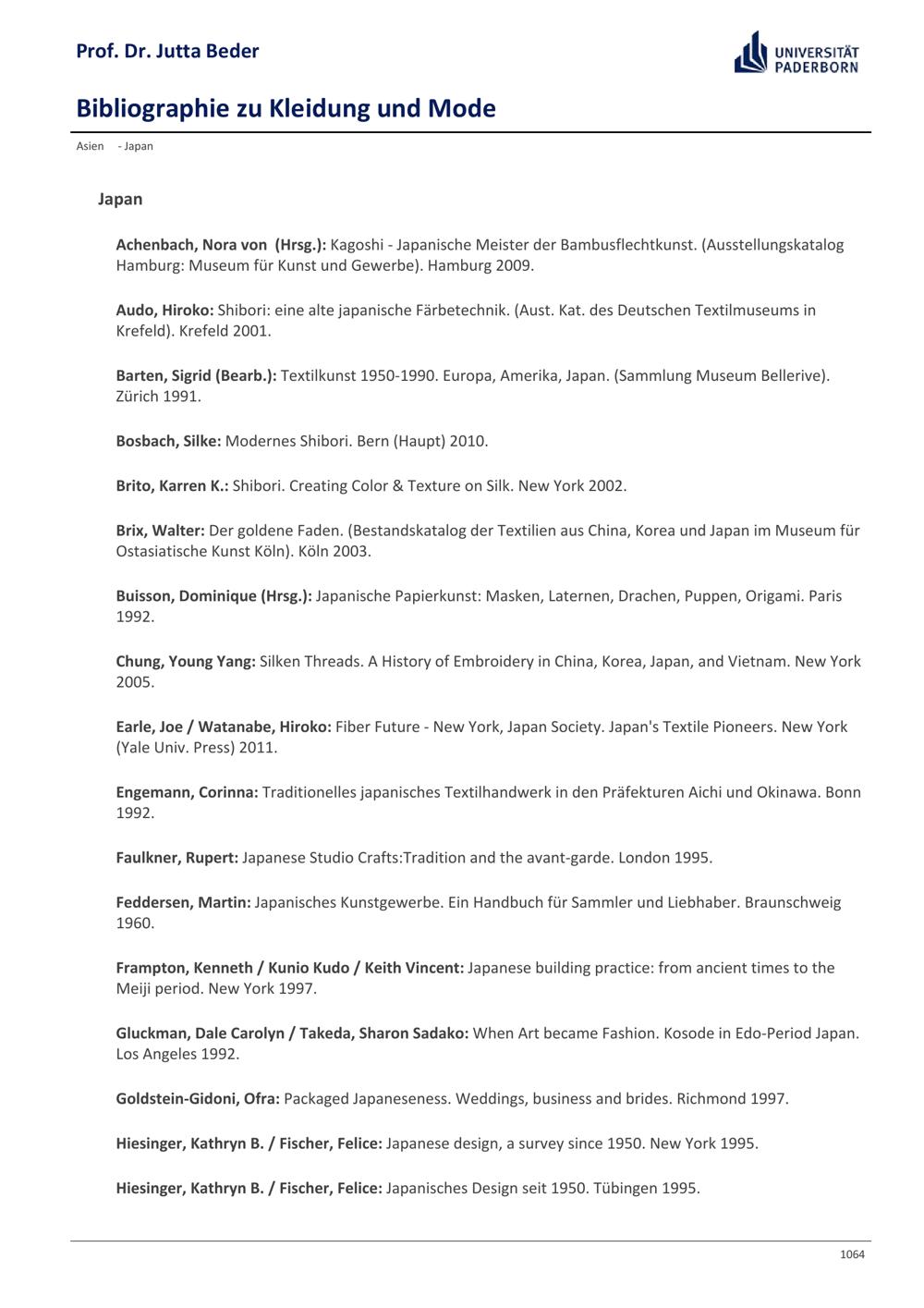 Bibliographie zu Kleidung und Mode / Prof. Dr. Jutta Beder