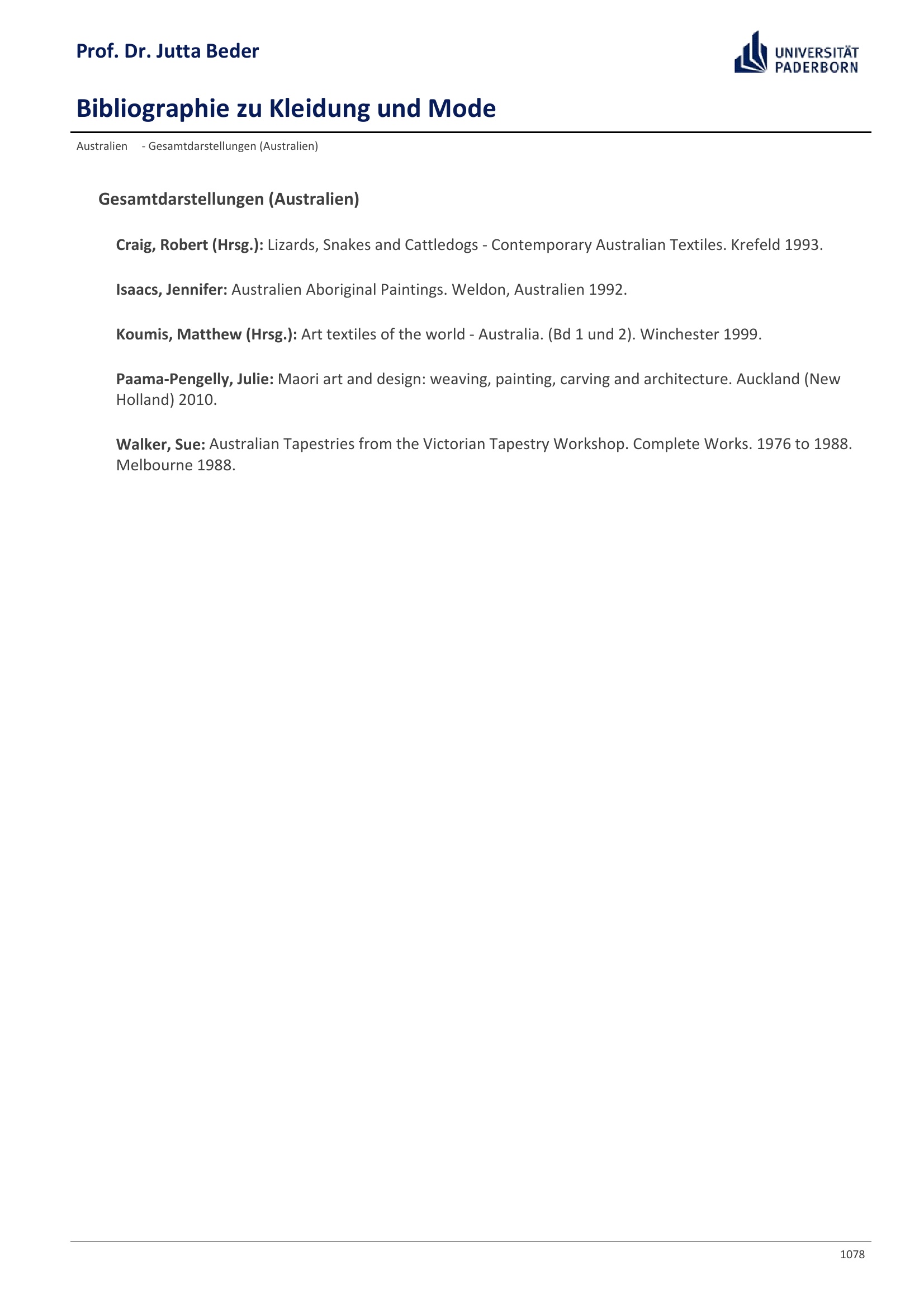 Bibliographie zu Kleidung und Mode / Prof. Dr. Jutta Beder