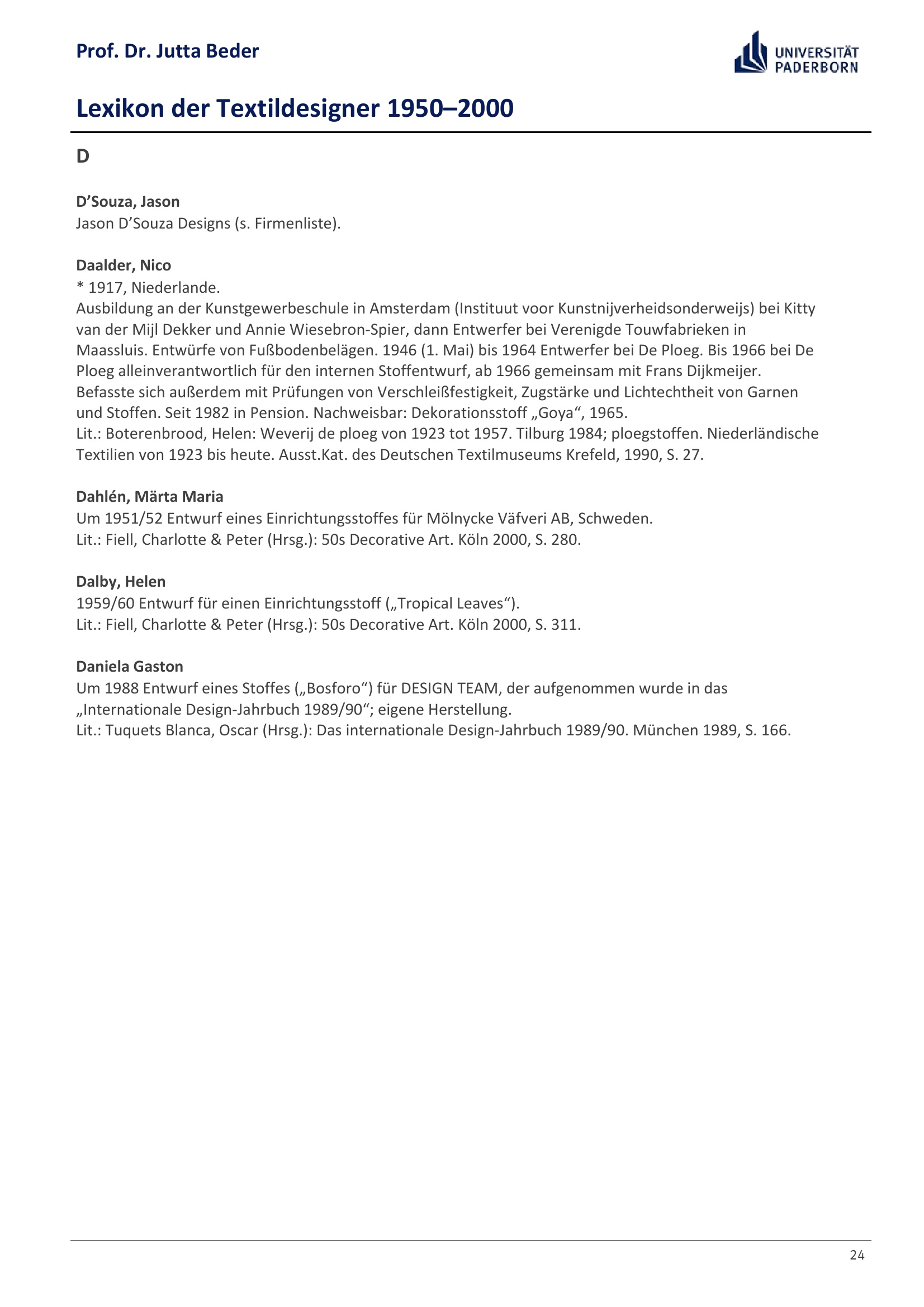 Lexikon der Textildesigner 1950-2000