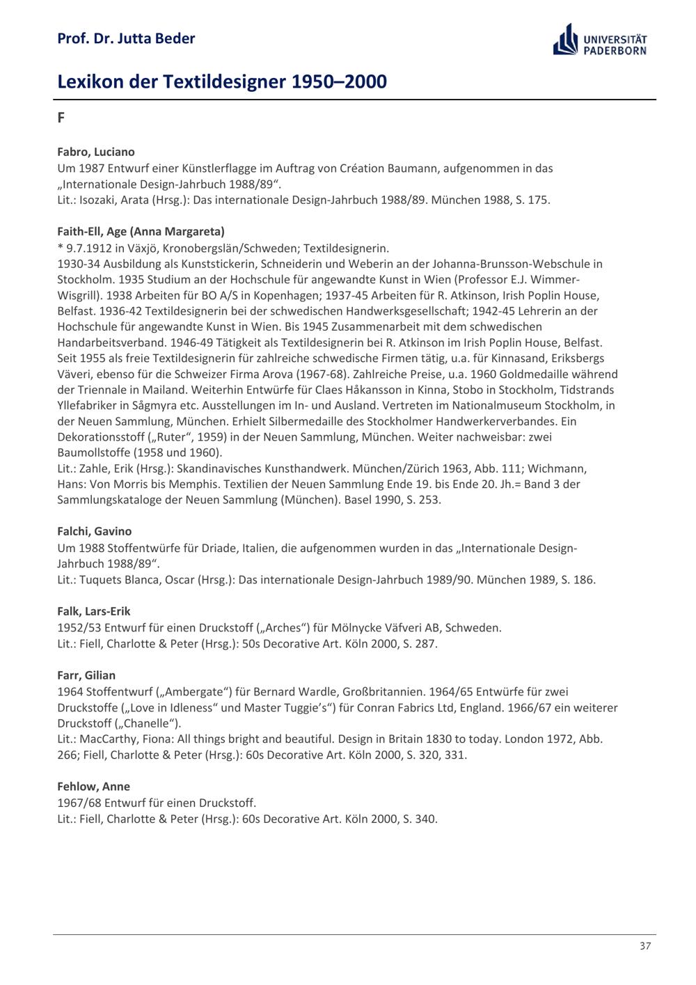 Lexikon der Textildesigner 1950-2000 / Prof. Dr. Jutta Beder