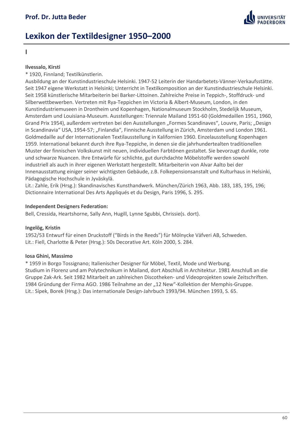 Lexikon der Textildesigner 1950-2000 / Prof. Dr. Jutta Beder