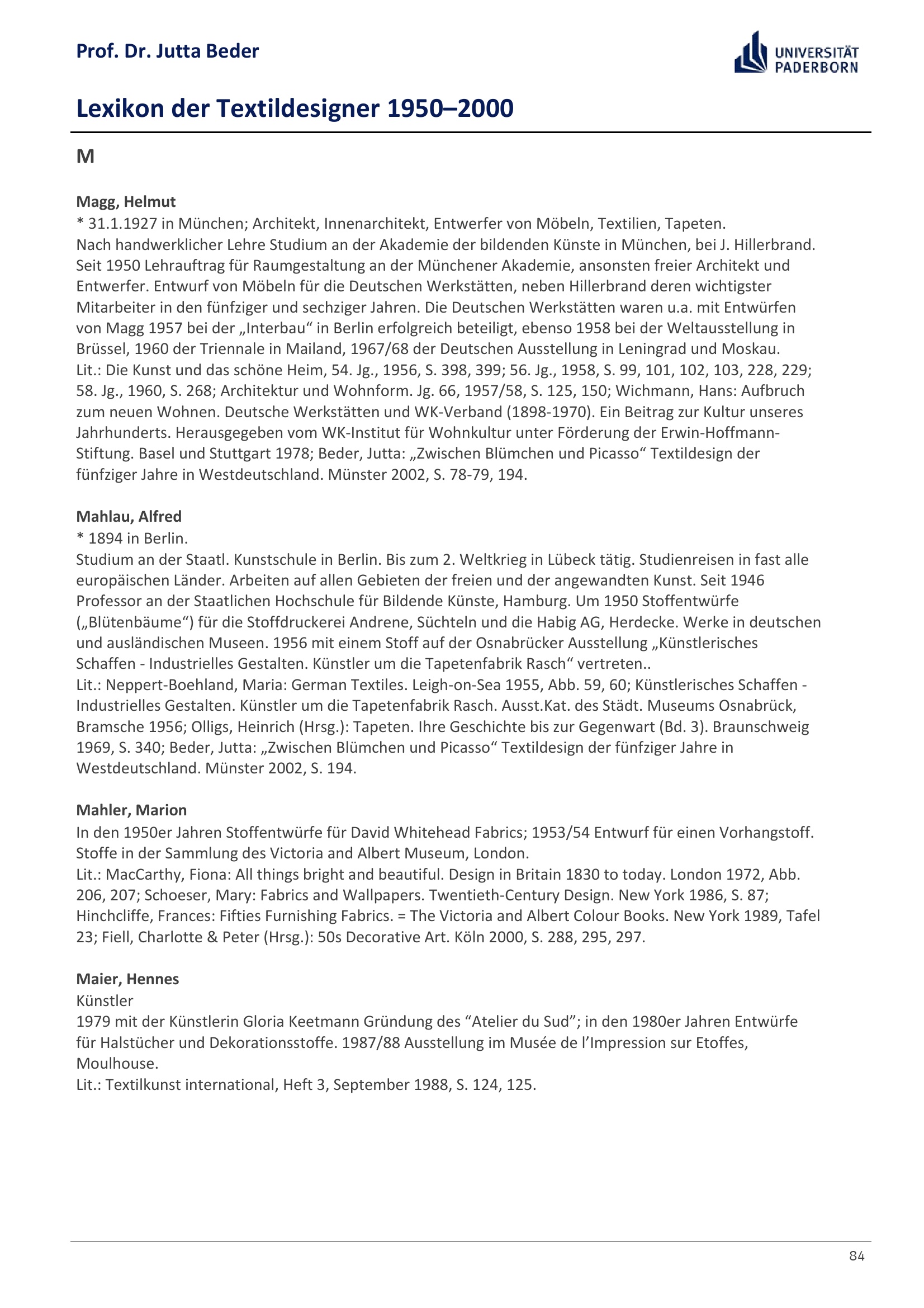 Lexikon der Textildesigner 1950-2000 / Prof. Dr. Jutta Beder