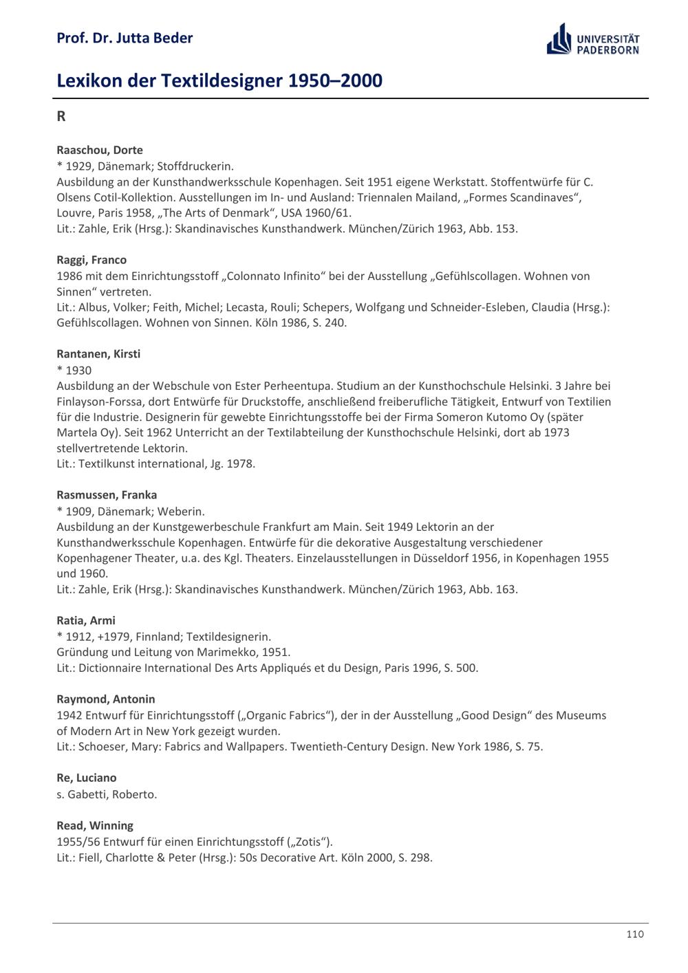 Lexikon der Textildesigner 1950-2000 / Prof. Dr. Jutta Beder
