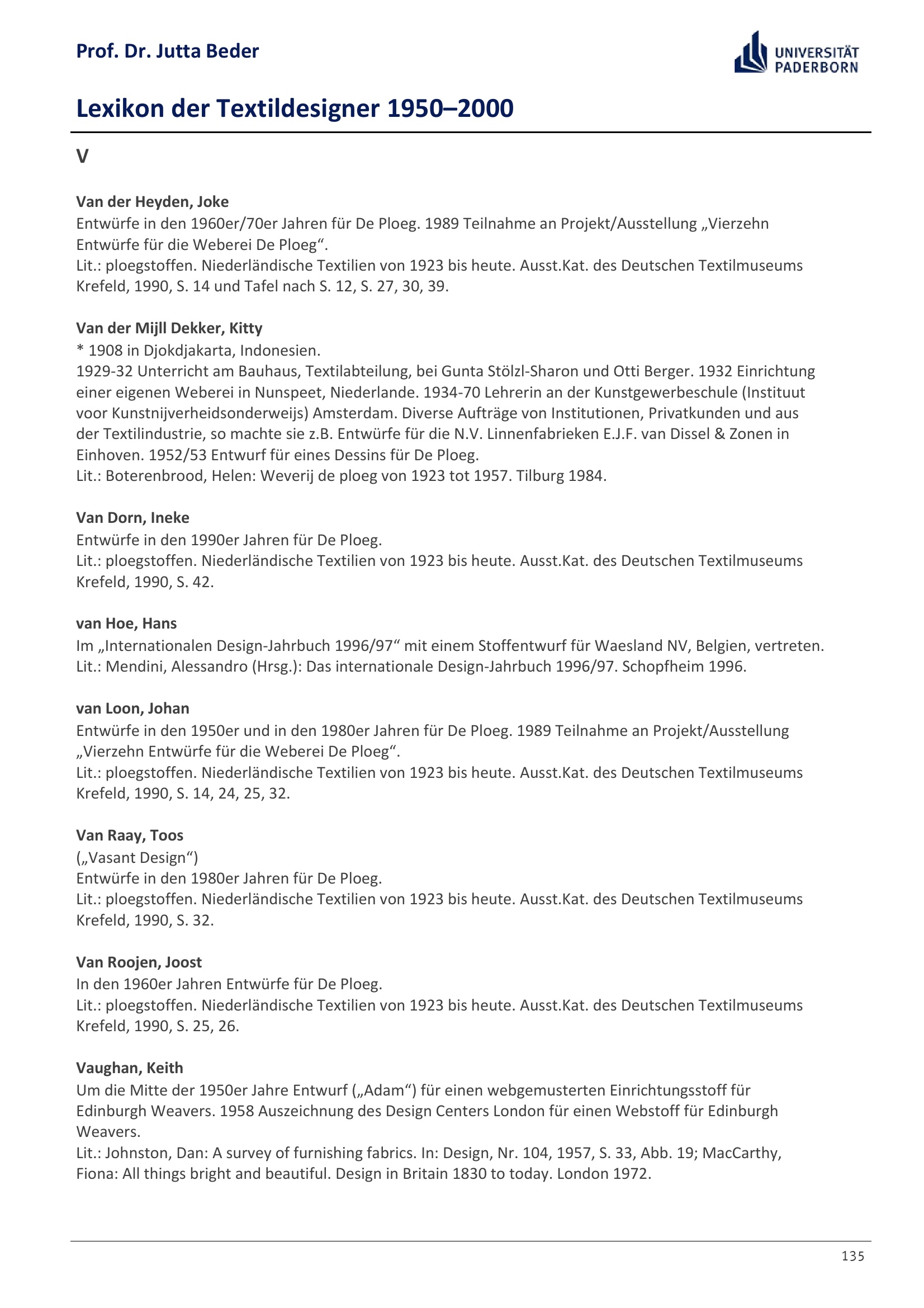Lexikon der Textildesigner 1950-2000 / Prof. Dr. Jutta Beder