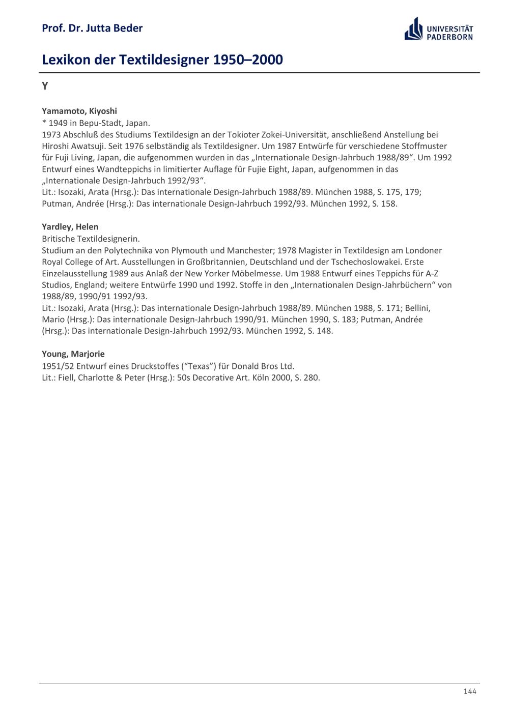 Lexikon der Textildesigner 1950-2000 / Prof. Dr. Jutta Beder