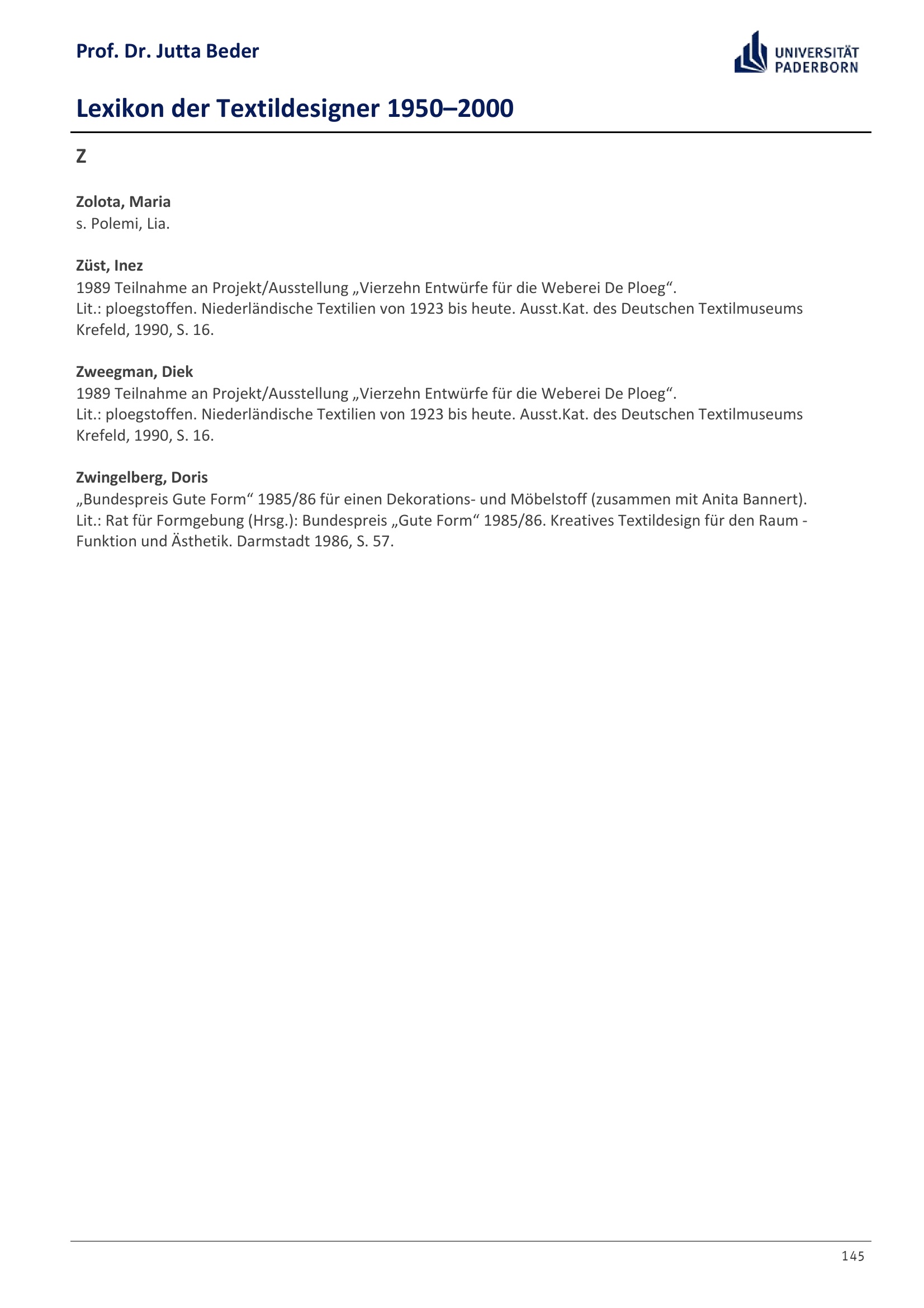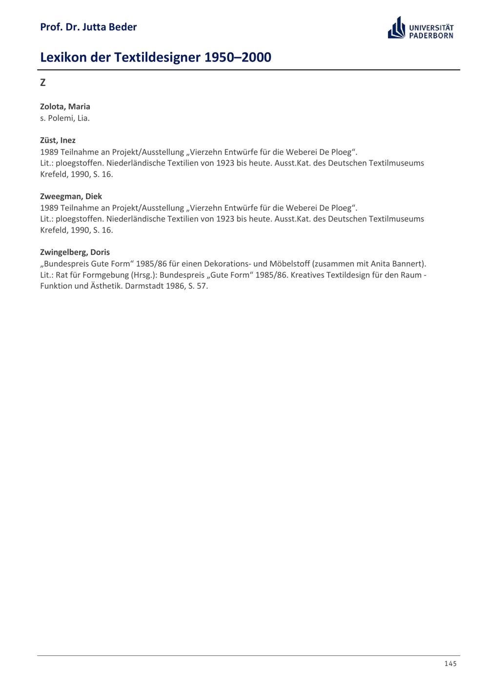 Lexikon der Textildesigner 1950-2000 / Prof. Dr. Jutta Beder