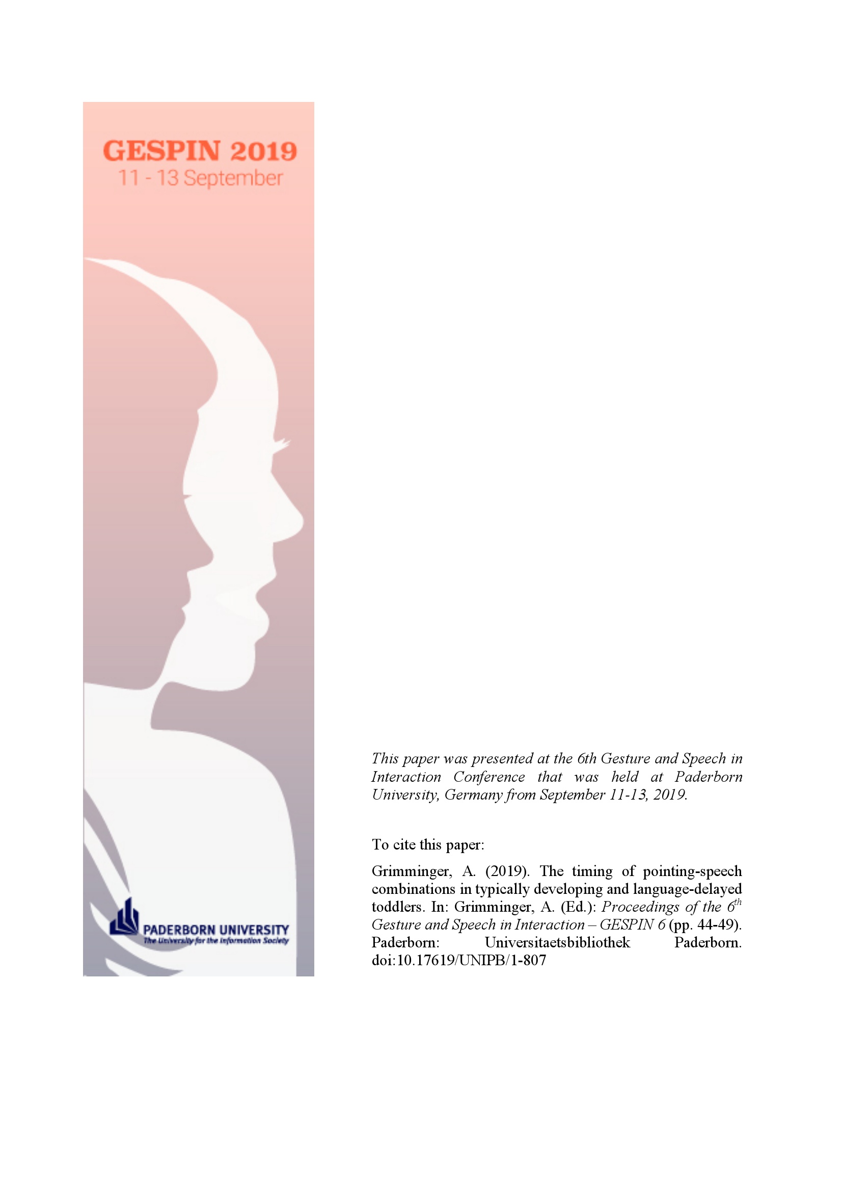 The timing of pointing-speech combinations in typically developing and language-delayed toddlers / Angela Grimminger