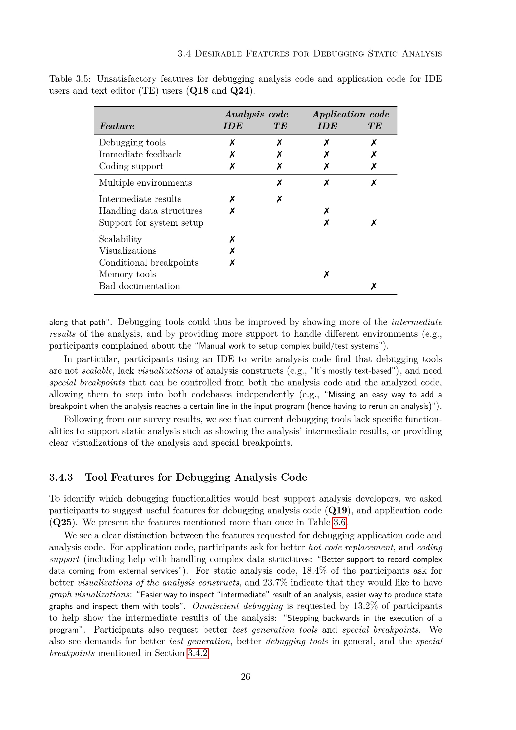 Tool Features for Debugging Analysis Code