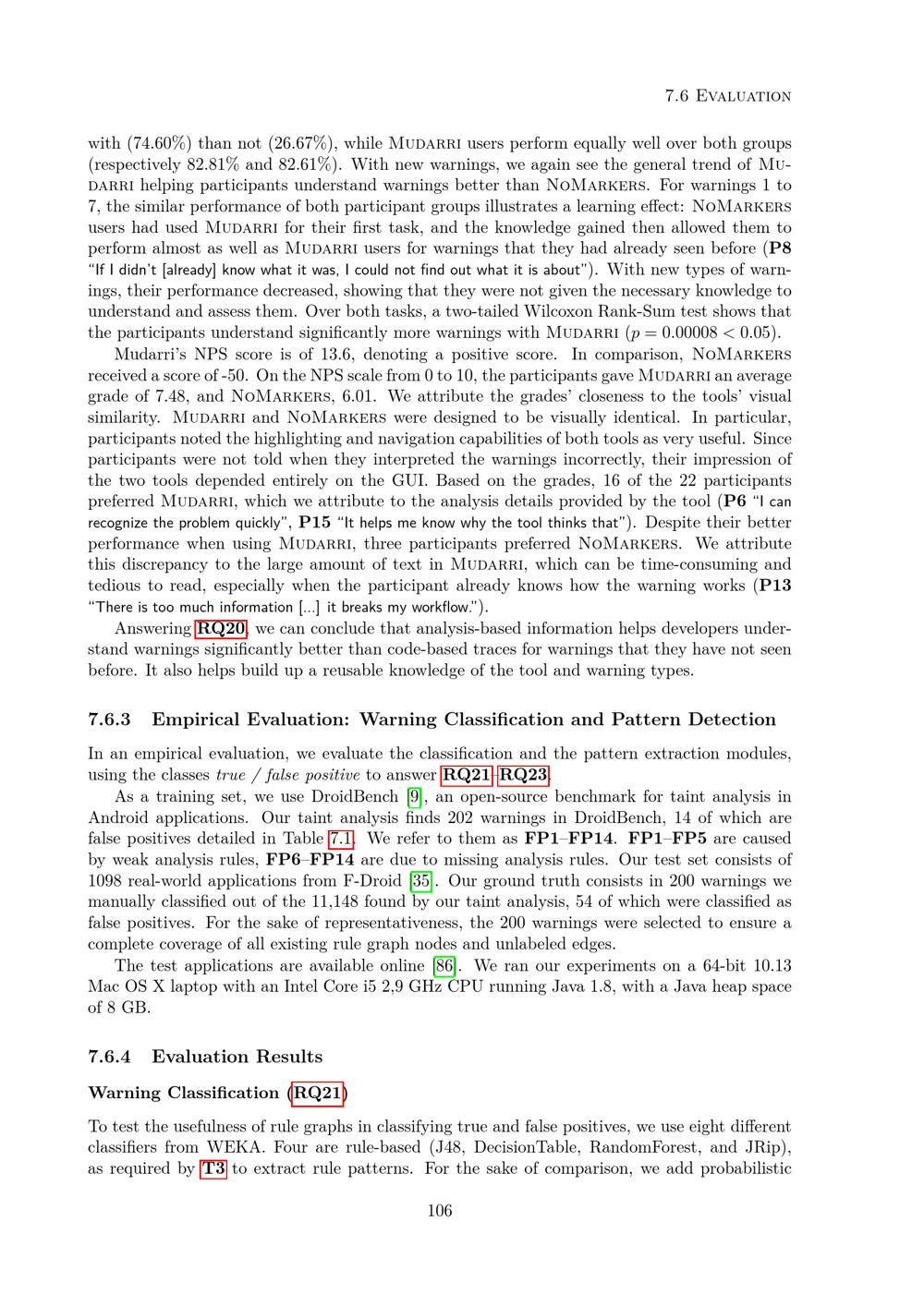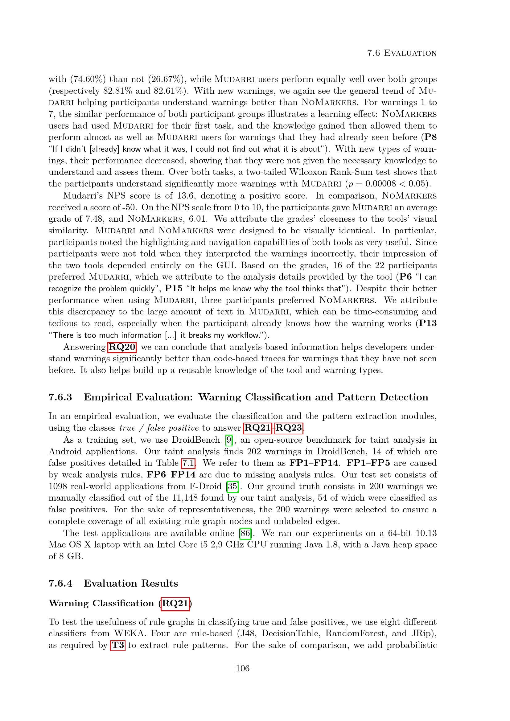 Empirical Evaluation: Warning Classification and Pattern Detection